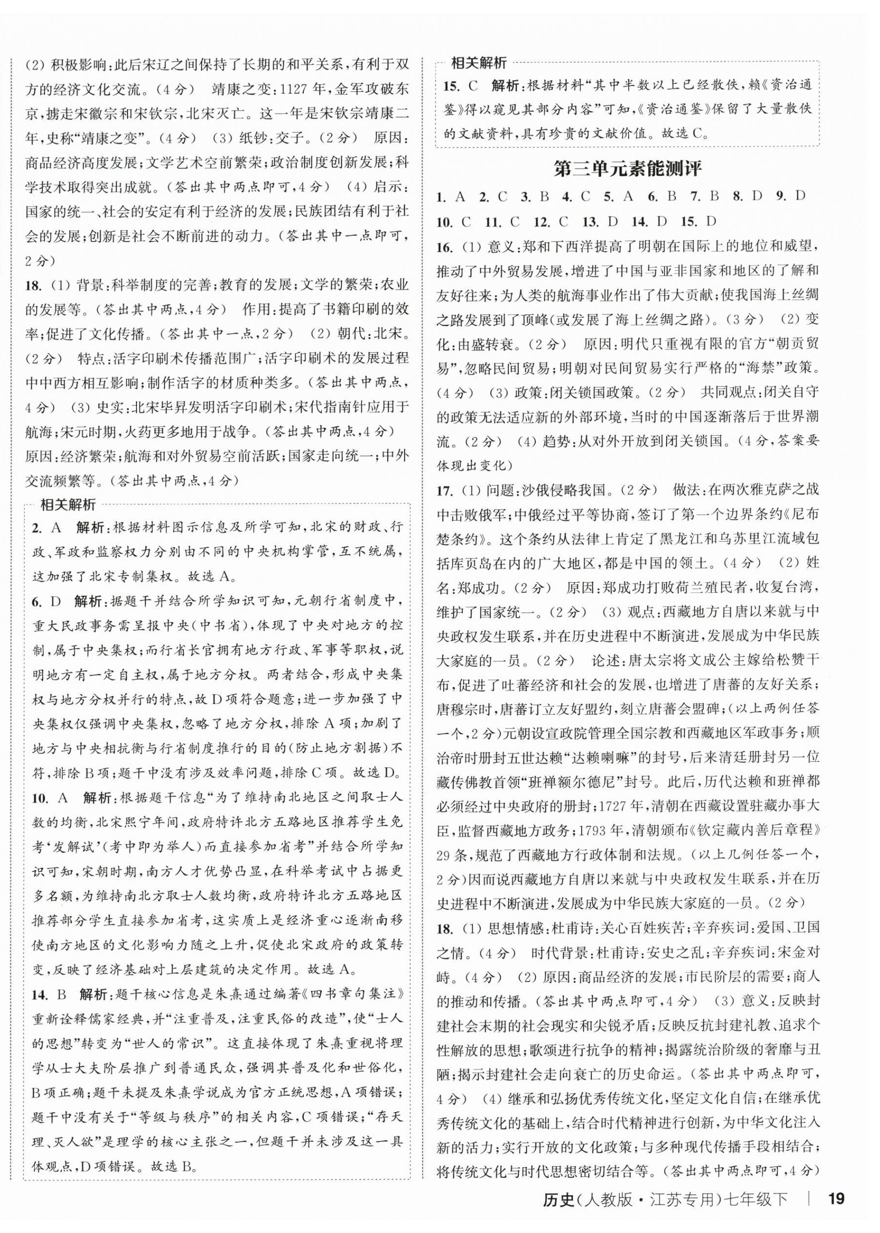 2026年通城学典课时作业本七年级历史下册人教版江苏专版第14页