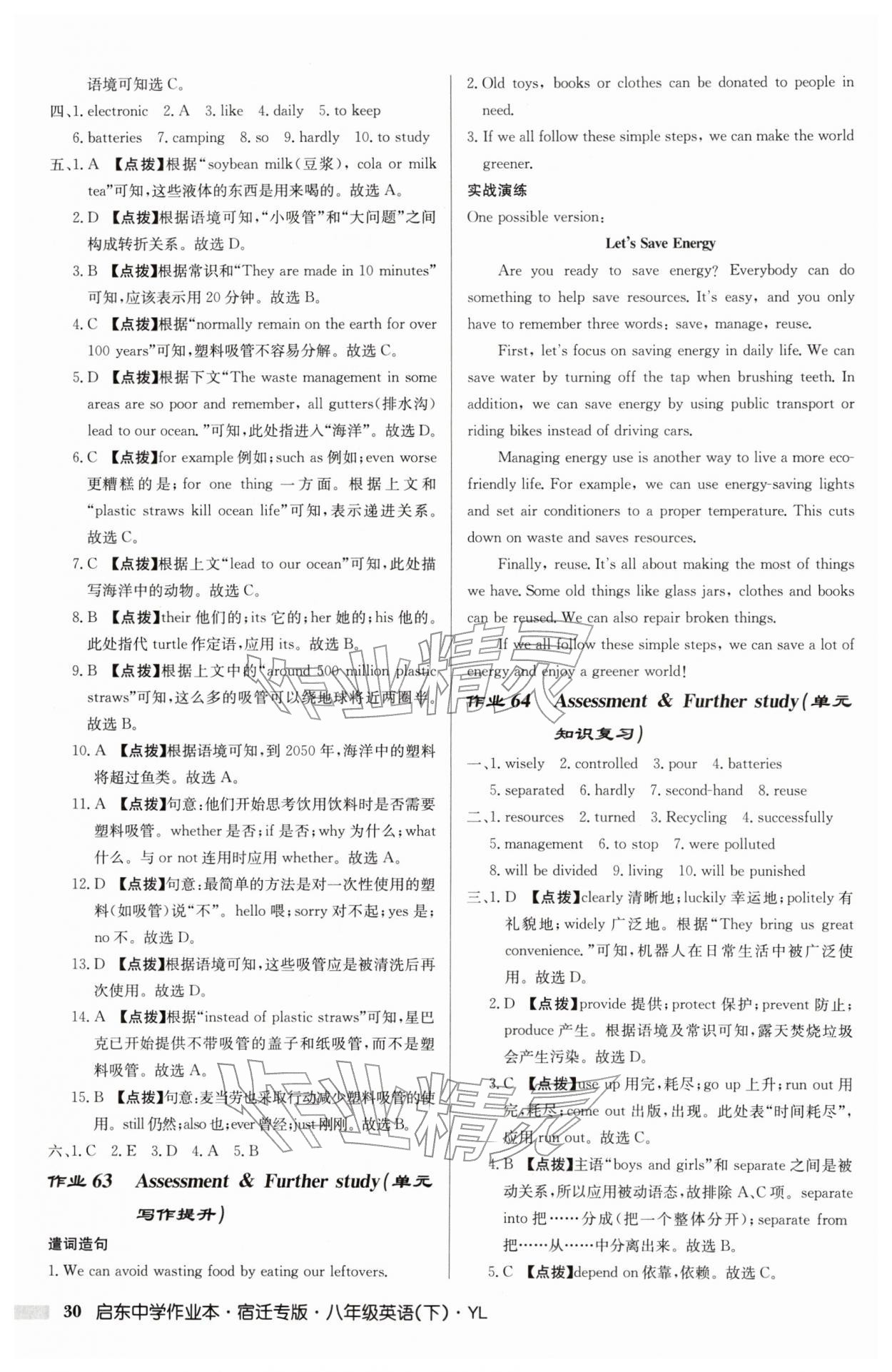 2026年启东中学作业本八年级英语下册译林版宿迁专版第30页