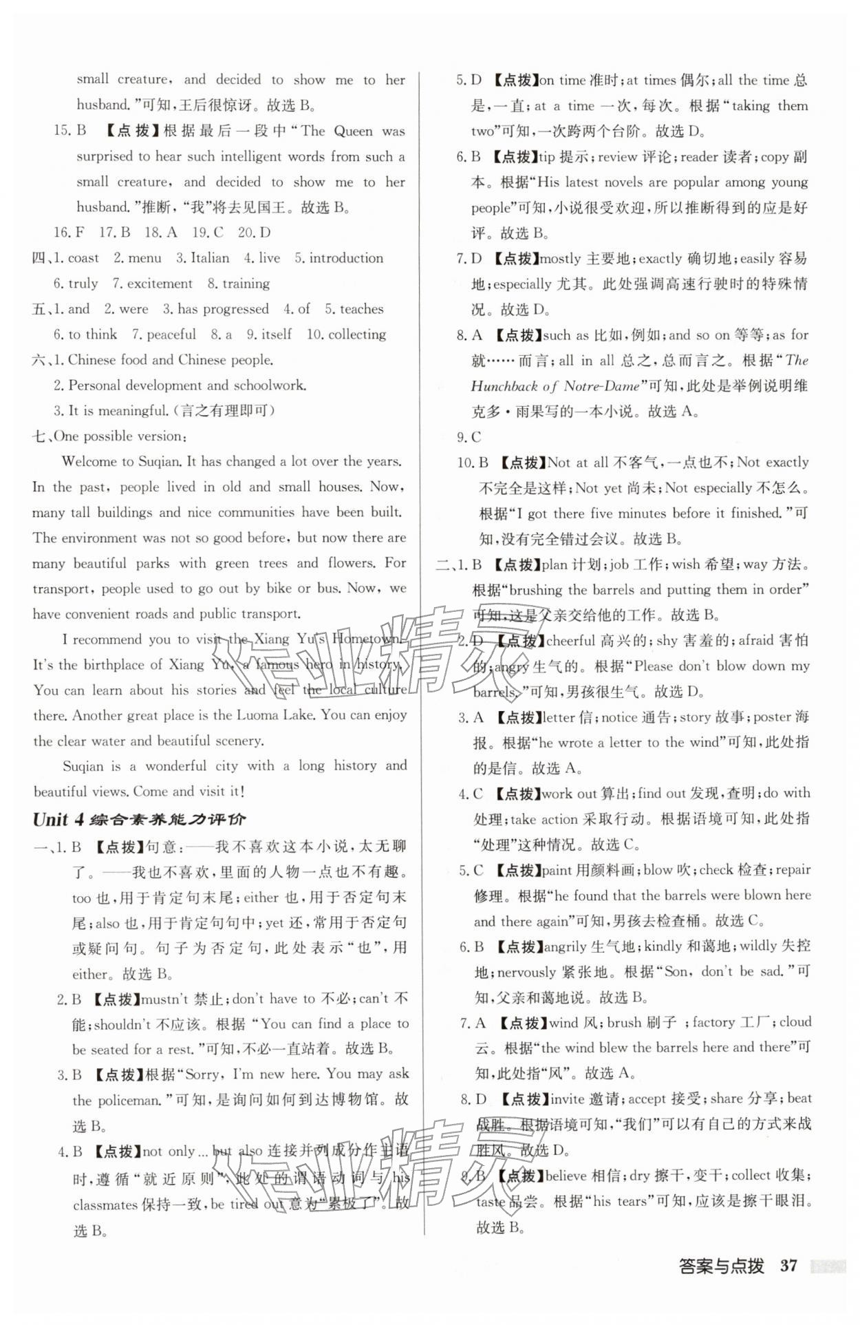 2026年启东中学作业本八年级英语下册译林版宿迁专版第37页