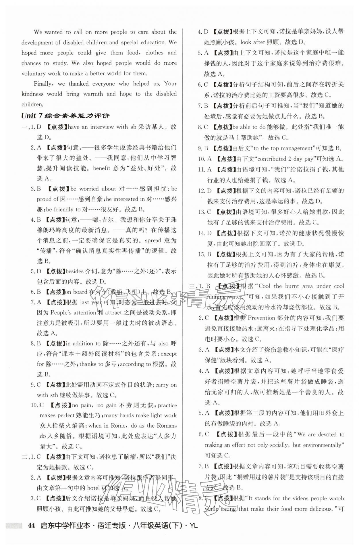 2026年启东中学作业本八年级英语下册译林版宿迁专版第44页