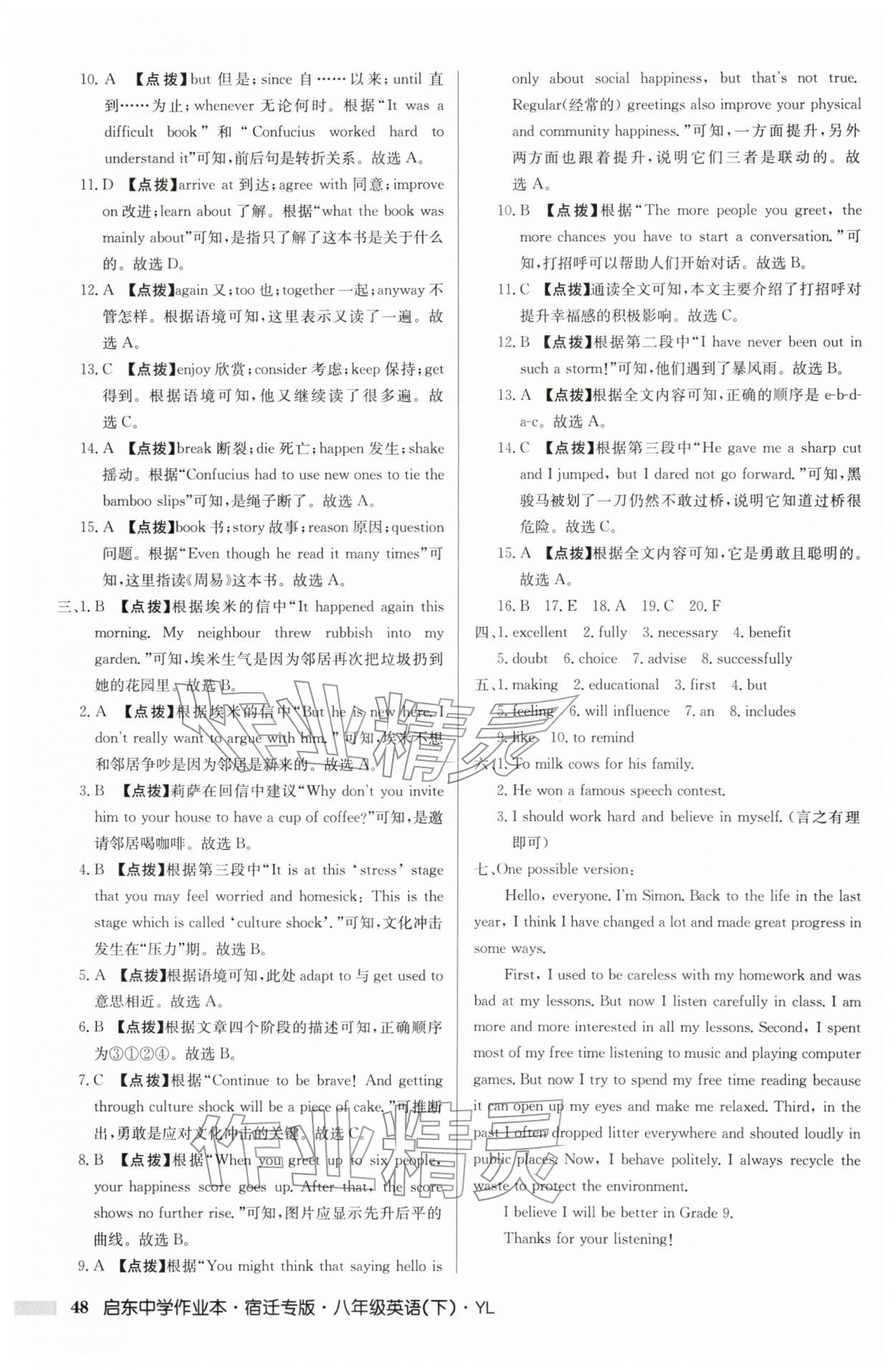 2026年启东中学作业本八年级英语下册译林版宿迁专版第48页