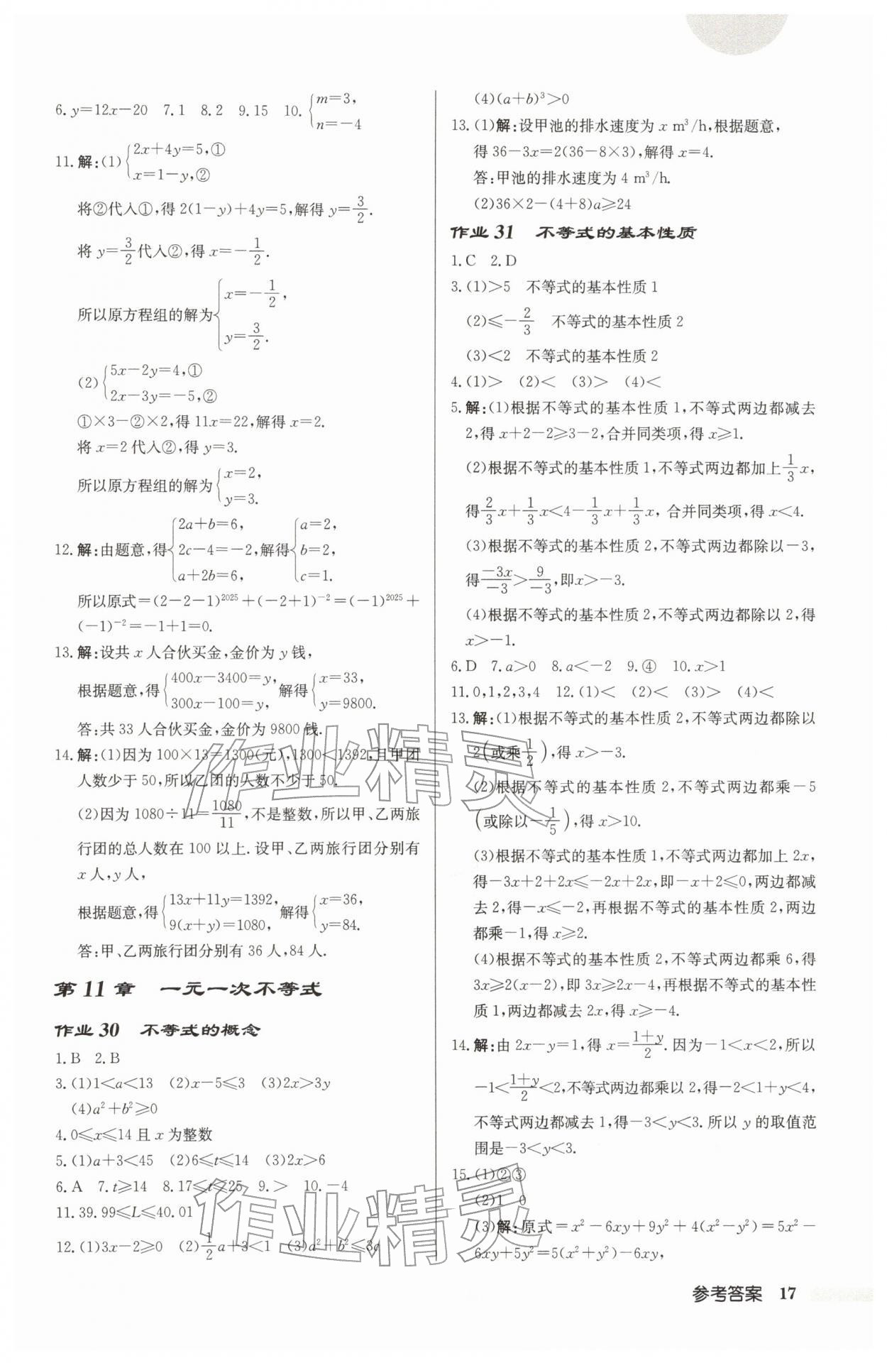 2026年启东中学作业本七年级数学下册苏科版宿迁专版第17页