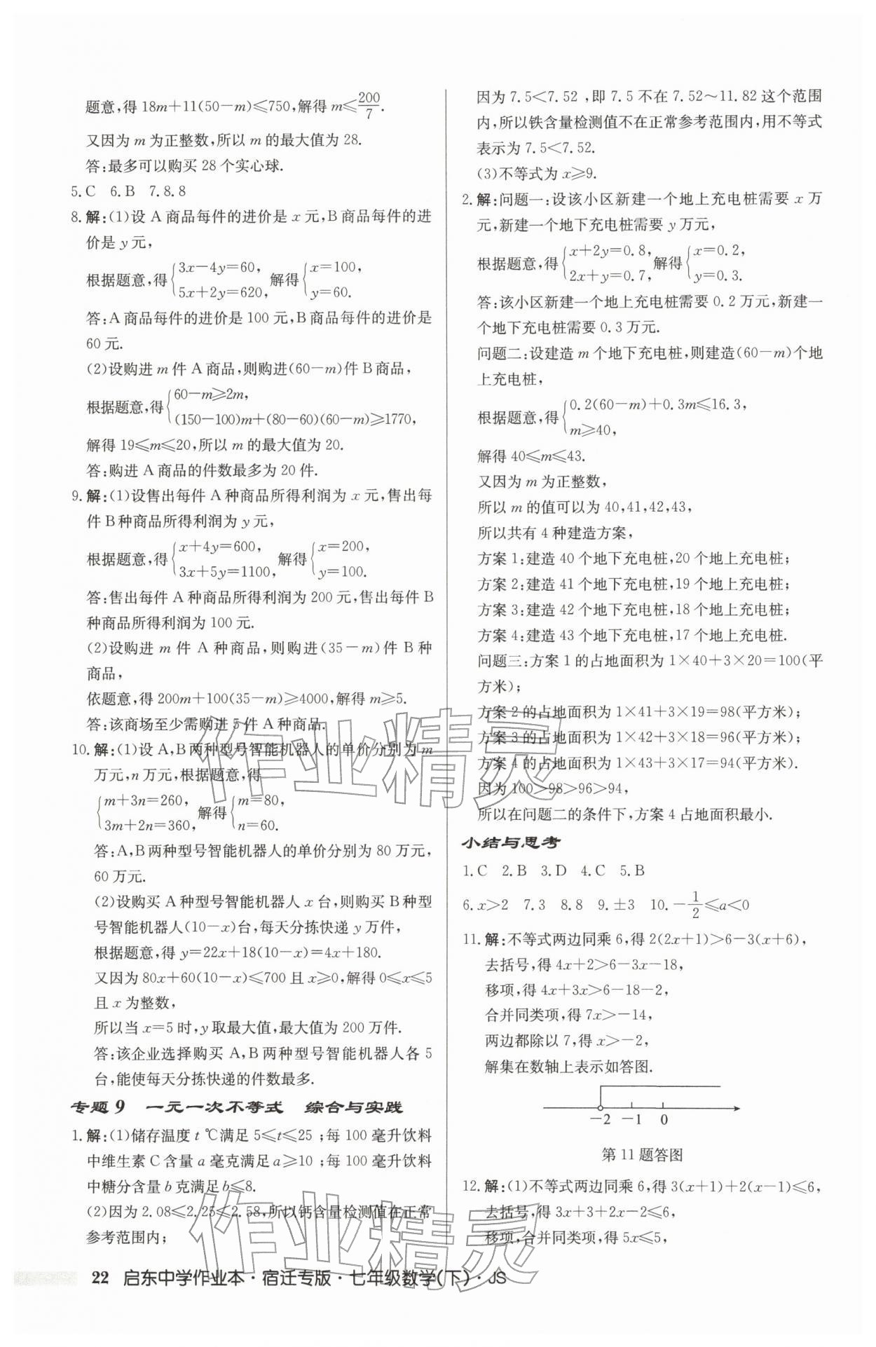 2026年启东中学作业本七年级数学下册苏科版宿迁专版第22页