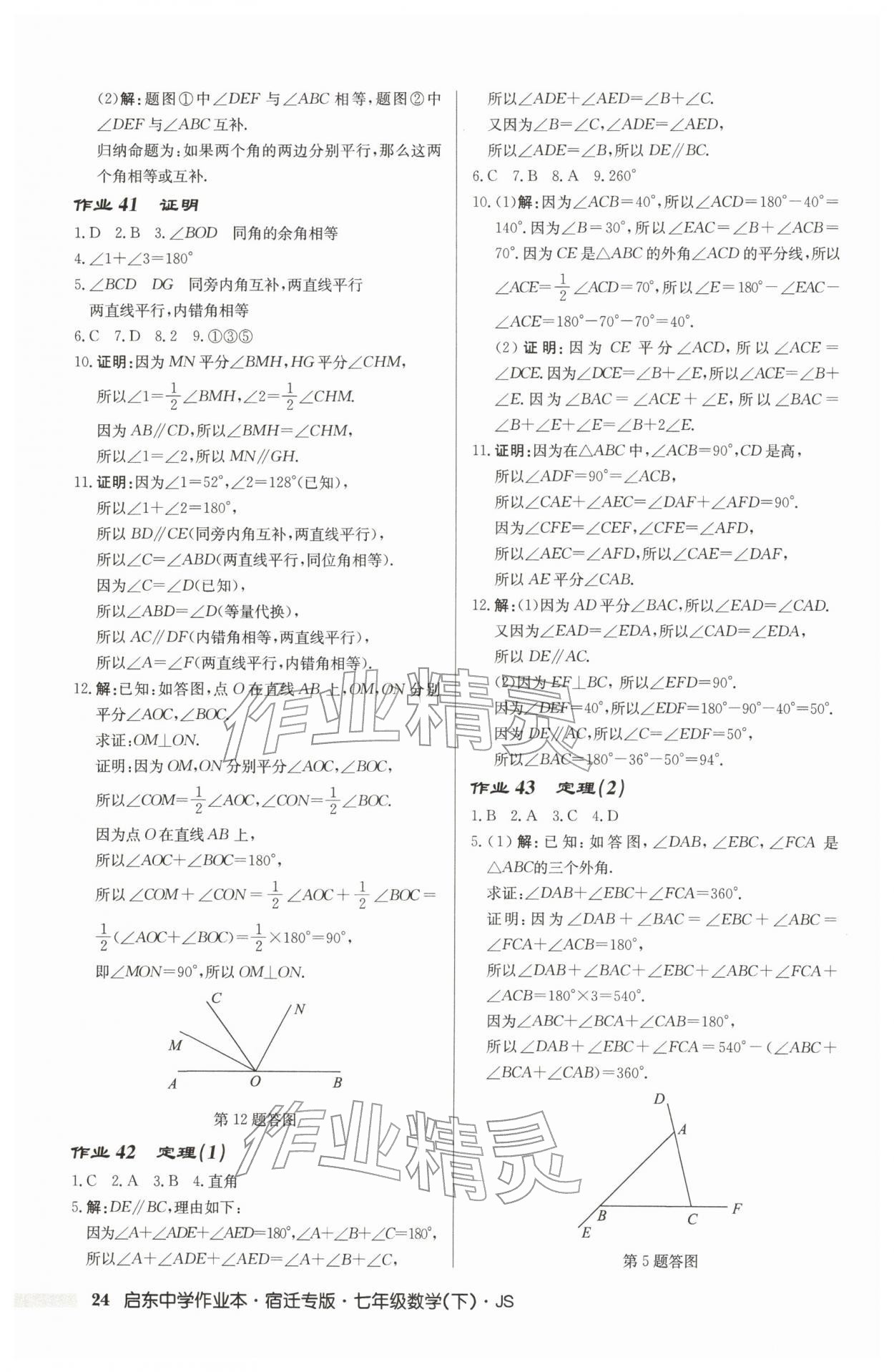 2026年启东中学作业本七年级数学下册苏科版宿迁专版第24页