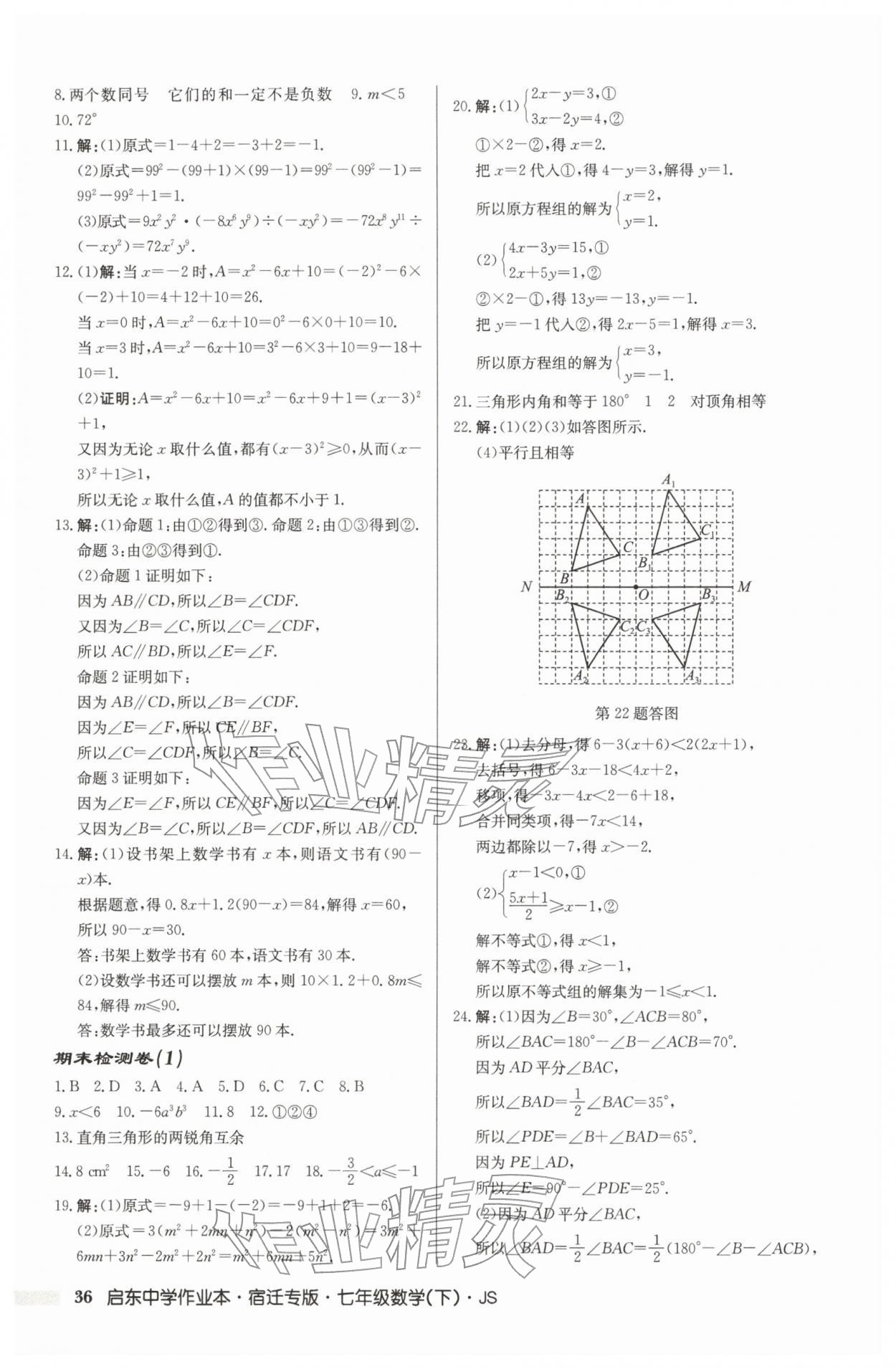 2026年启东中学作业本七年级数学下册苏科版宿迁专版第36页