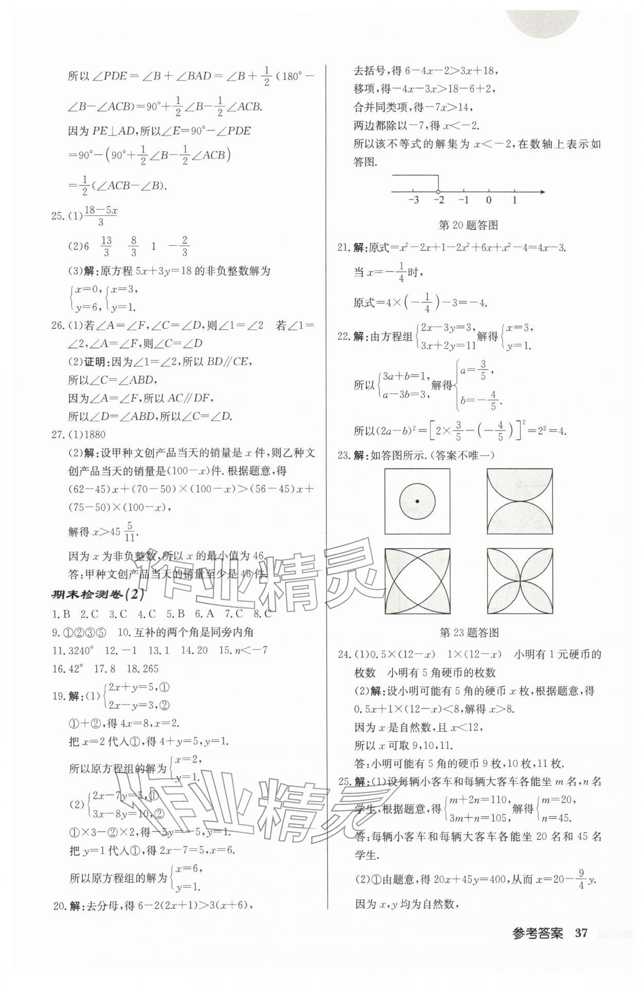 2026年启东中学作业本七年级数学下册苏科版宿迁专版第37页
