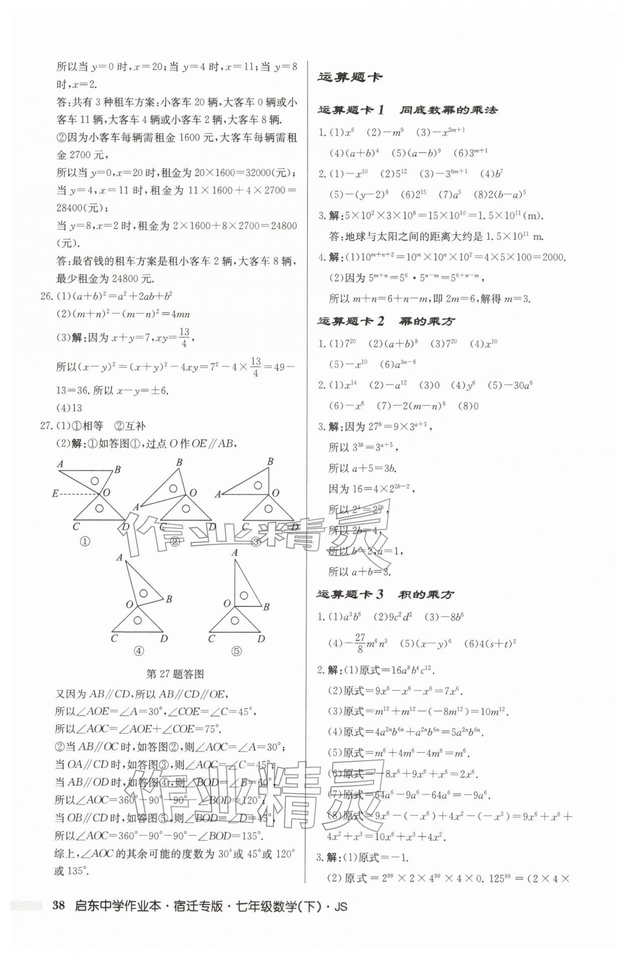 2026年启东中学作业本七年级数学下册苏科版宿迁专版第38页