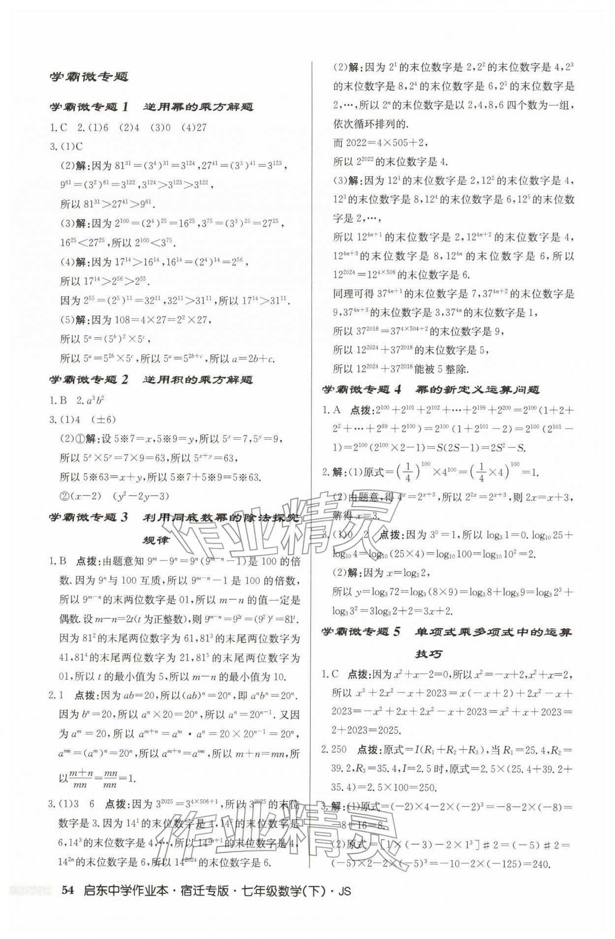 2026年启东中学作业本七年级数学下册苏科版宿迁专版第54页