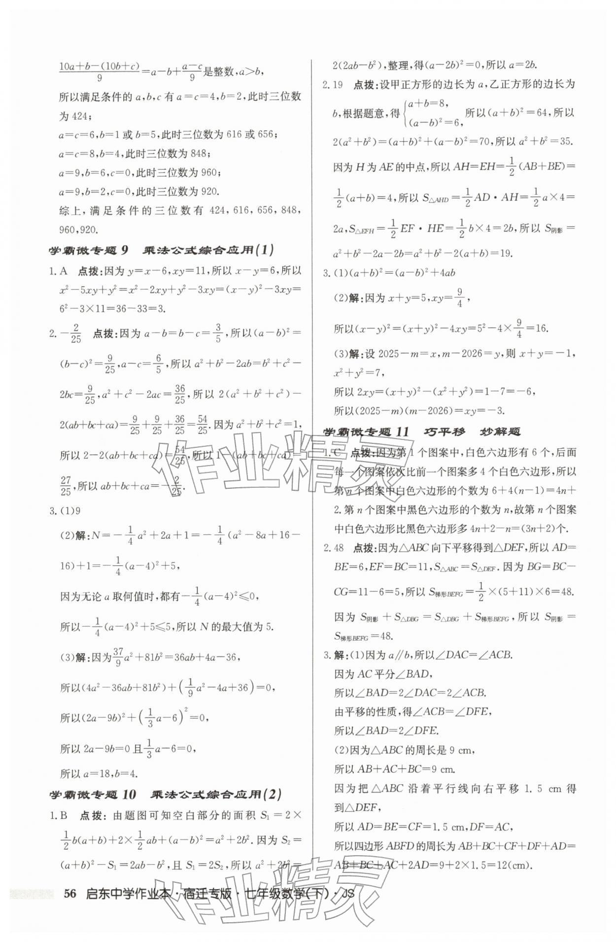 2026年启东中学作业本七年级数学下册苏科版宿迁专版第56页