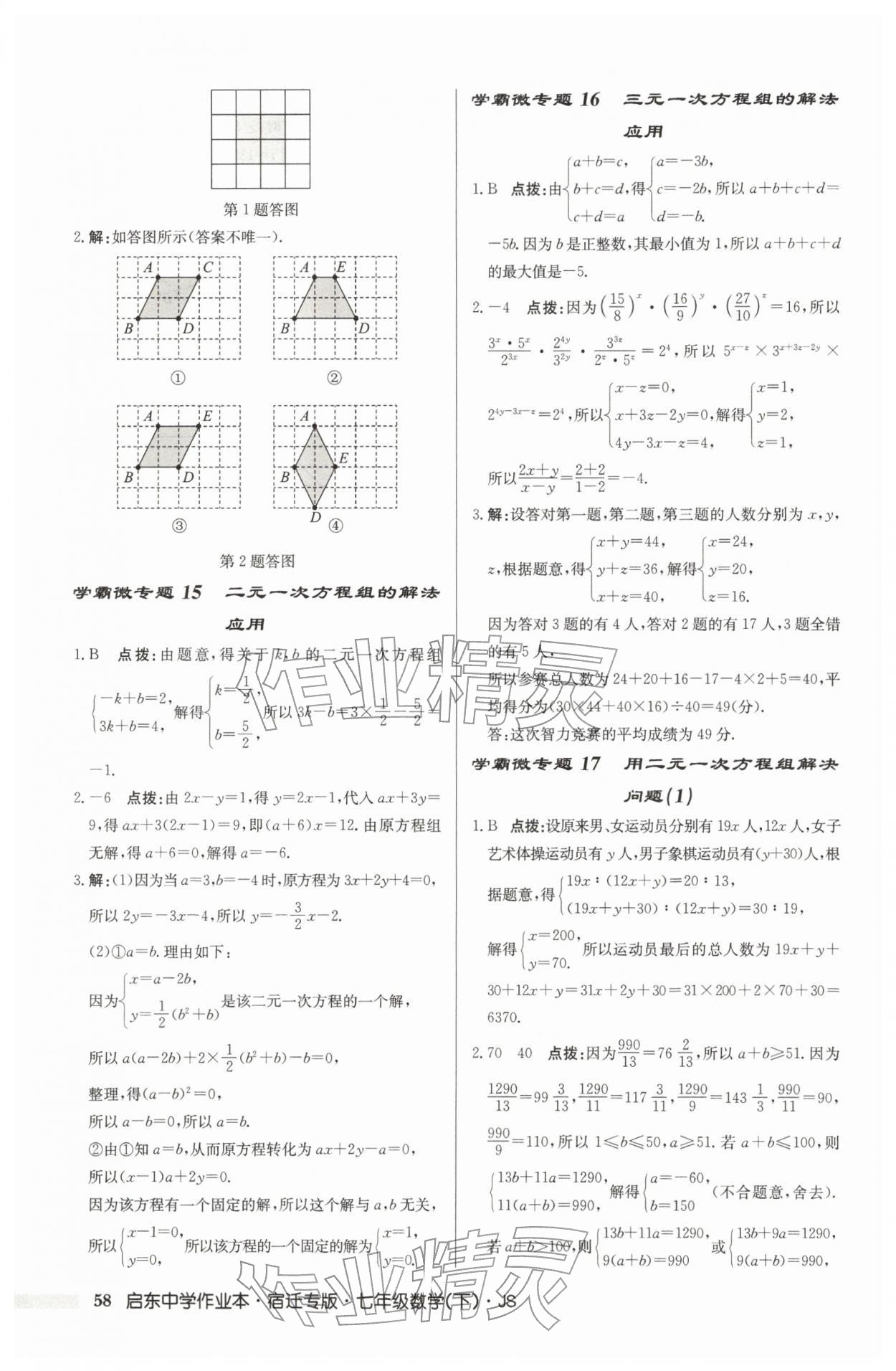 2026年启东中学作业本七年级数学下册苏科版宿迁专版第58页