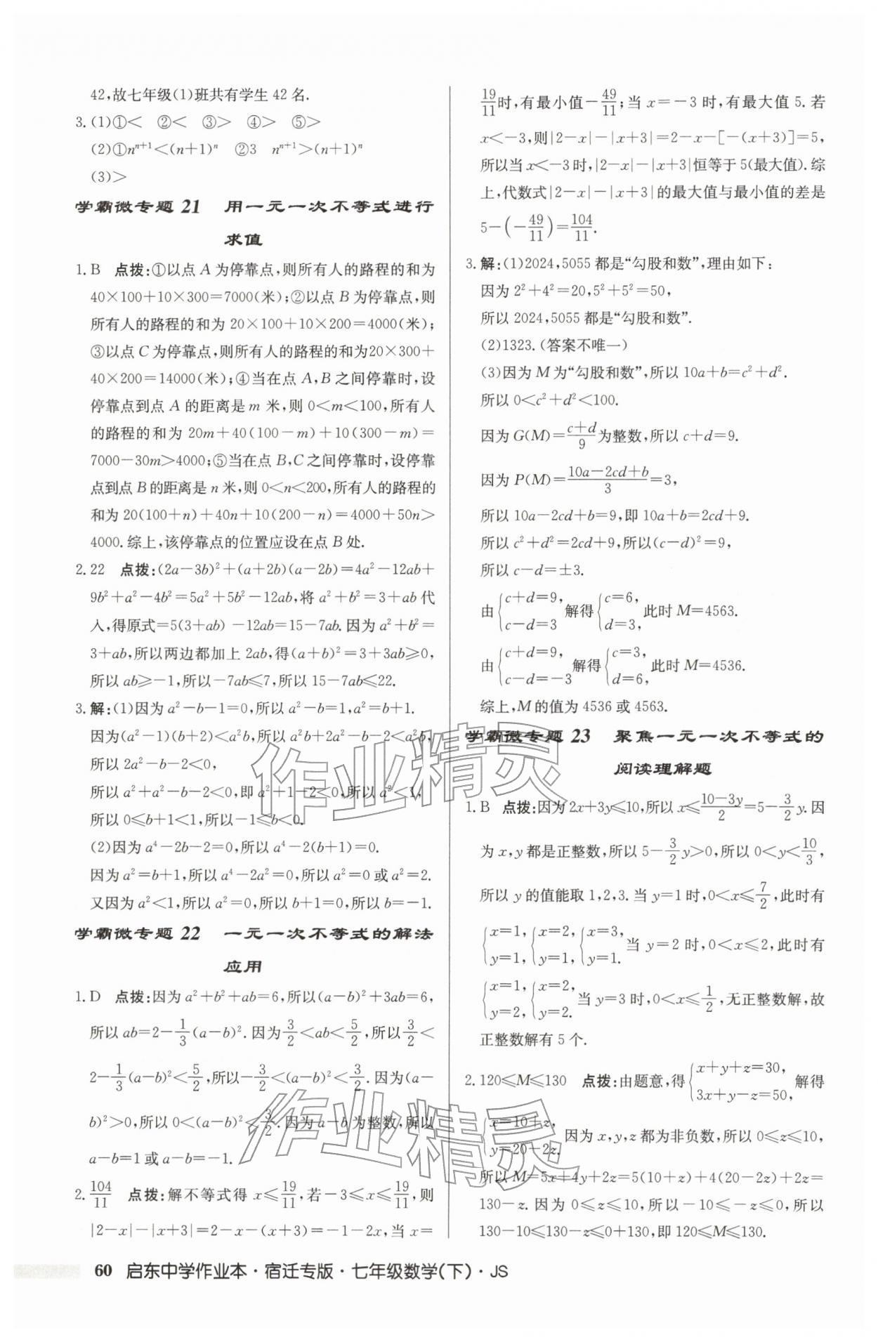 2026年启东中学作业本七年级数学下册苏科版宿迁专版第60页