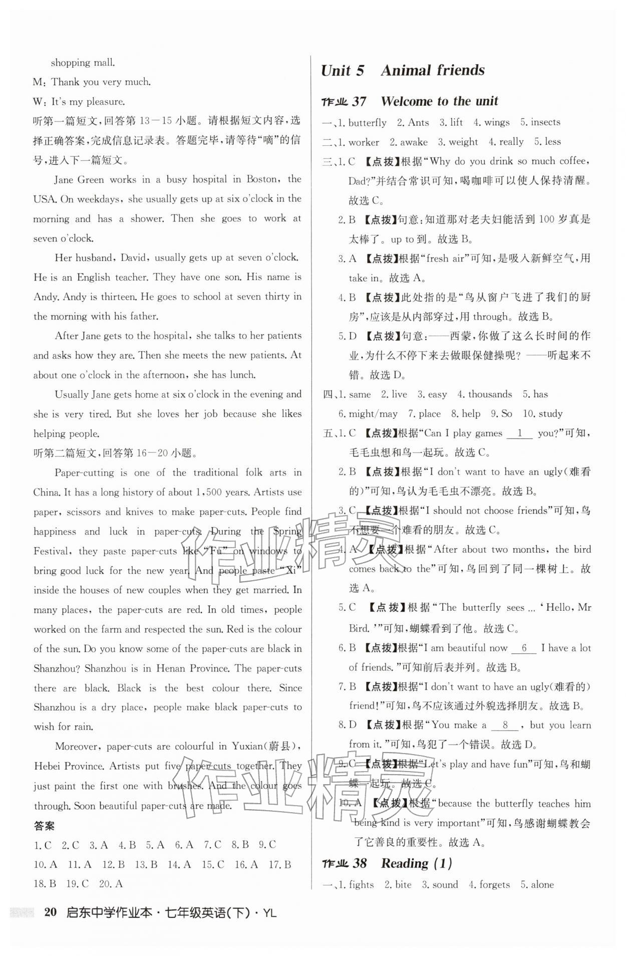 2026年启东中学作业本七年级英语下册译林版第20页