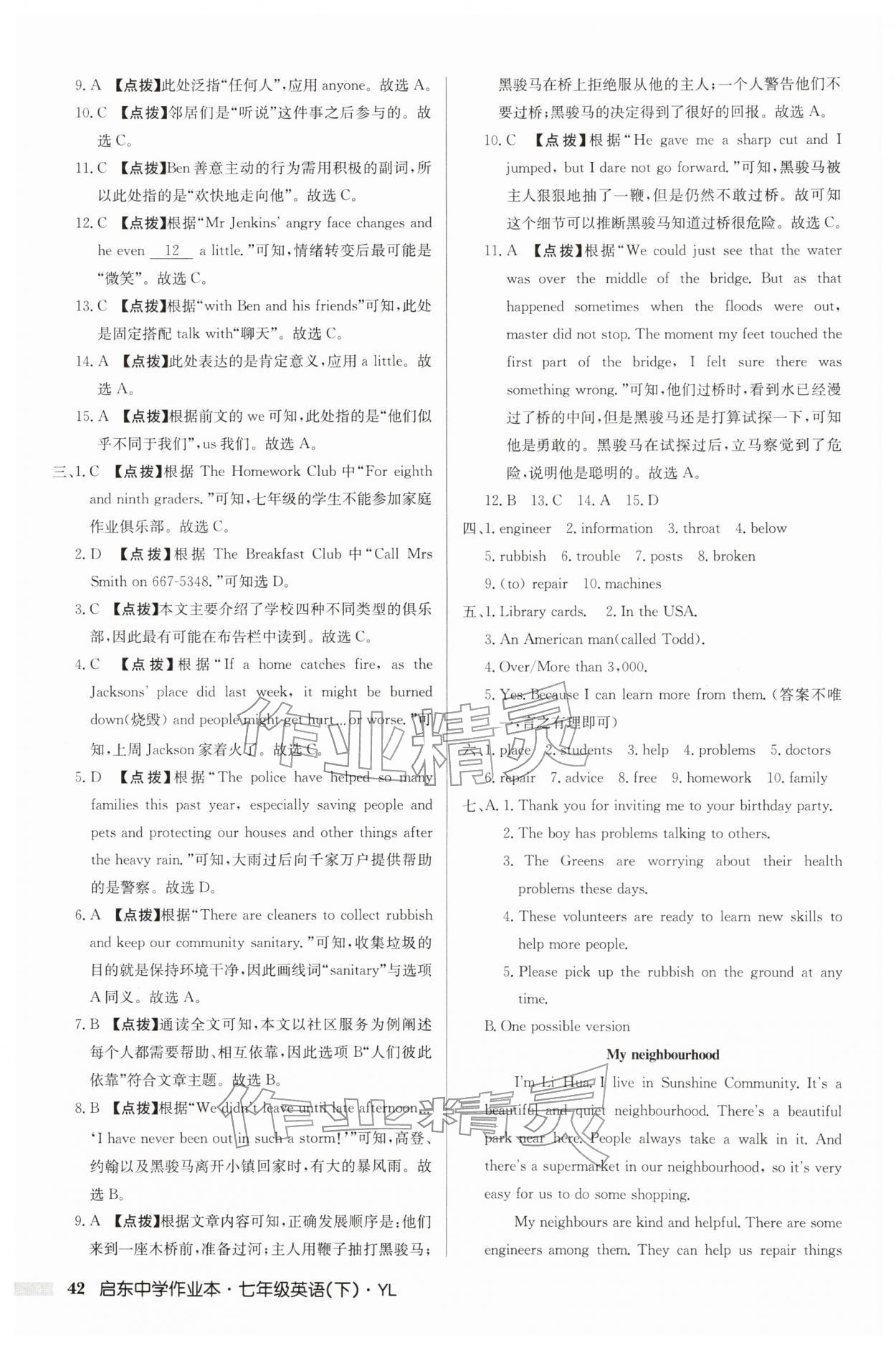 2026年启东中学作业本七年级英语下册译林版第42页
