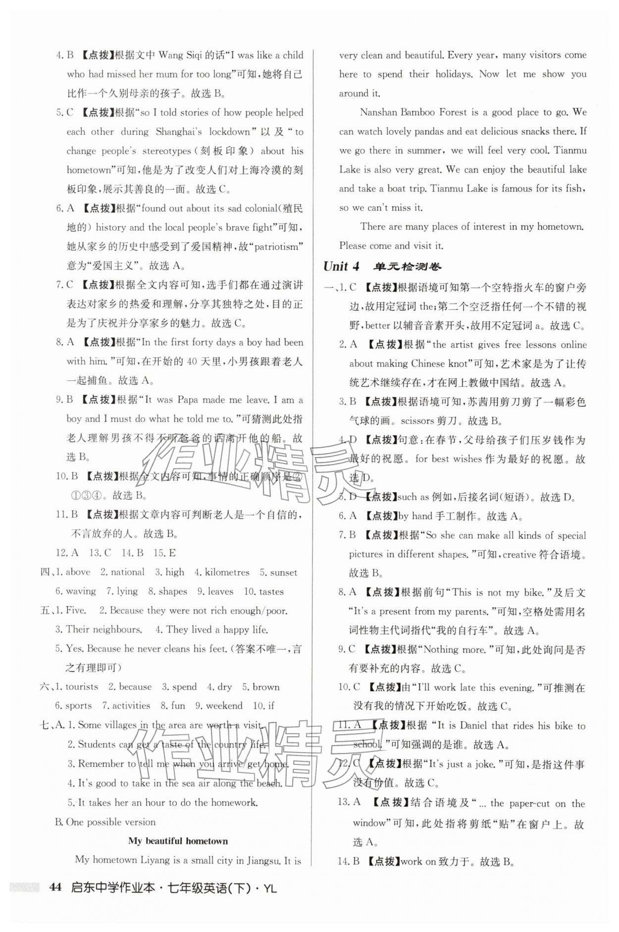 2026年启东中学作业本七年级英语下册译林版第44页