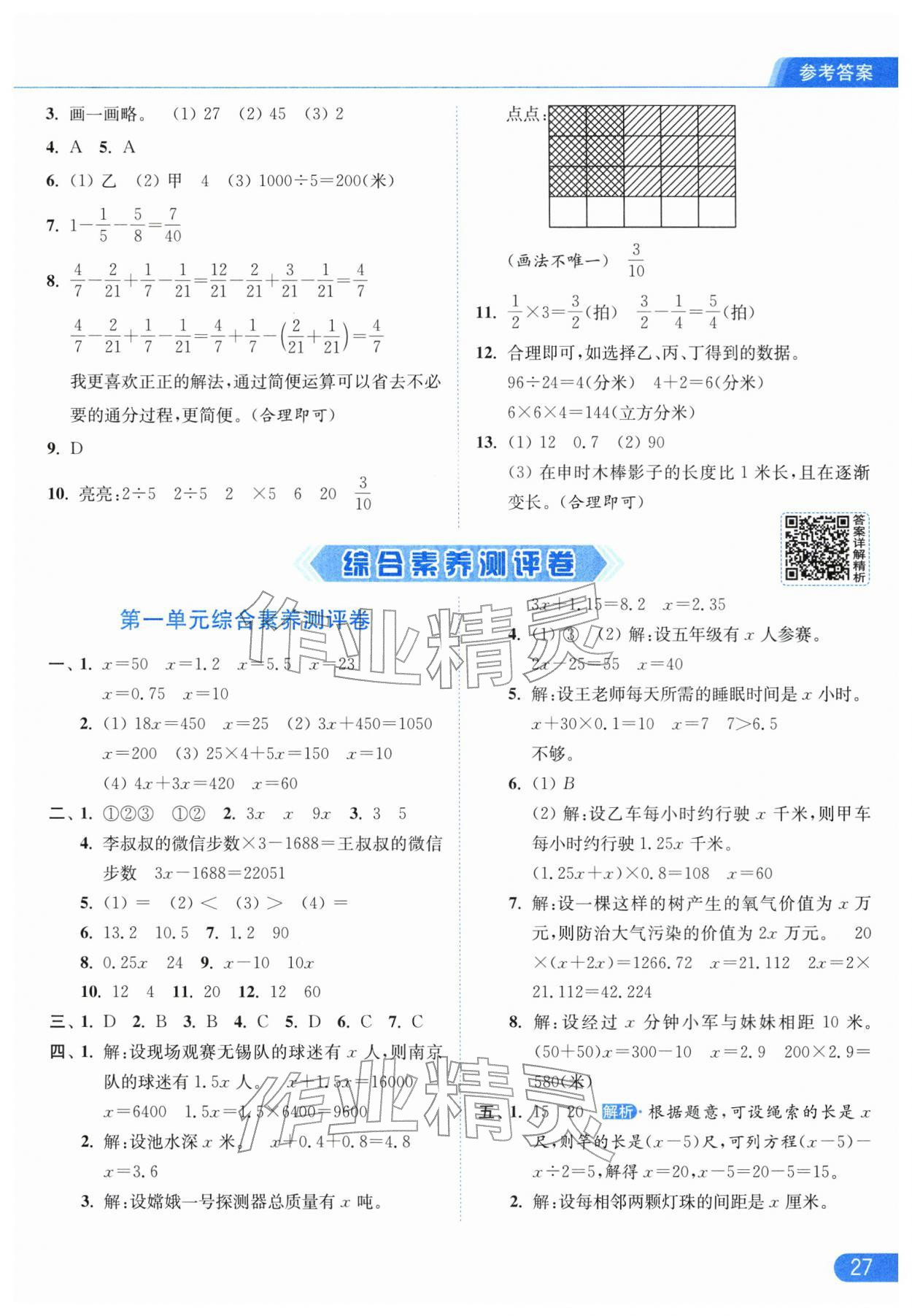 2026年亮点给力提优课时作业本五年级数学下册苏教版江苏专版第27页