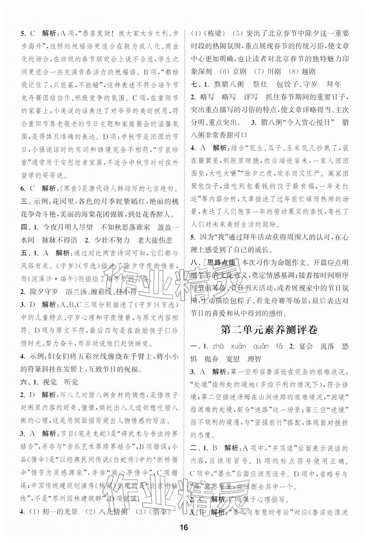 2026年通城学典课时作业本六年级语文下册人教版江苏专版第16页