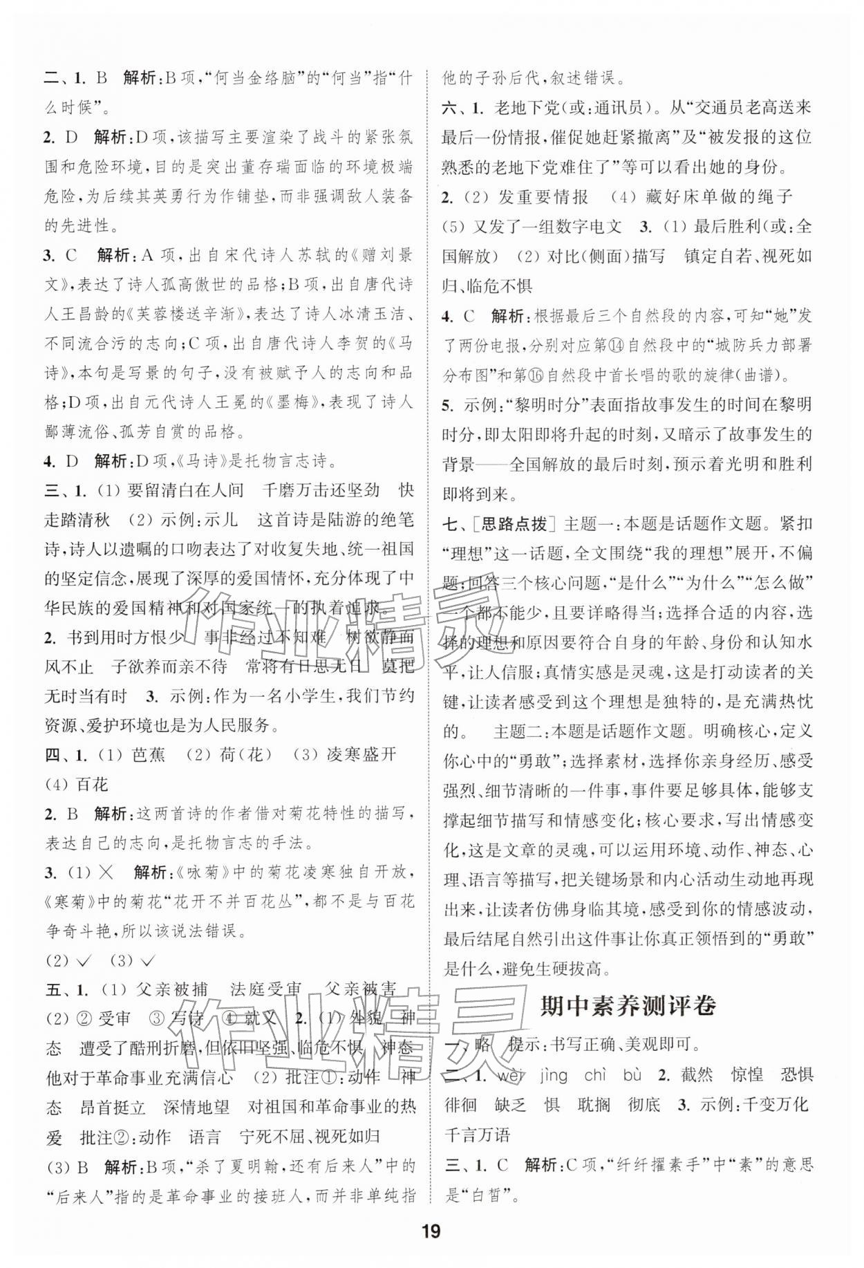 2026年通城学典课时作业本六年级语文下册人教版江苏专版第19页