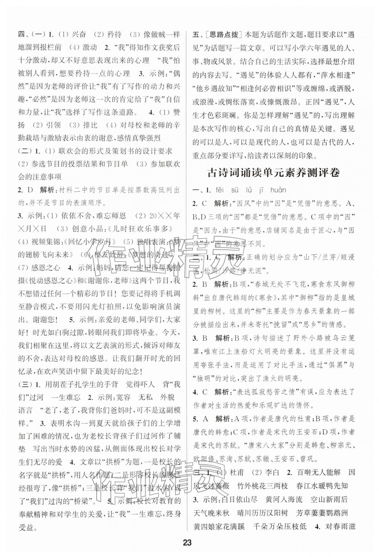 2026年通城学典课时作业本六年级语文下册人教版江苏专版第23页