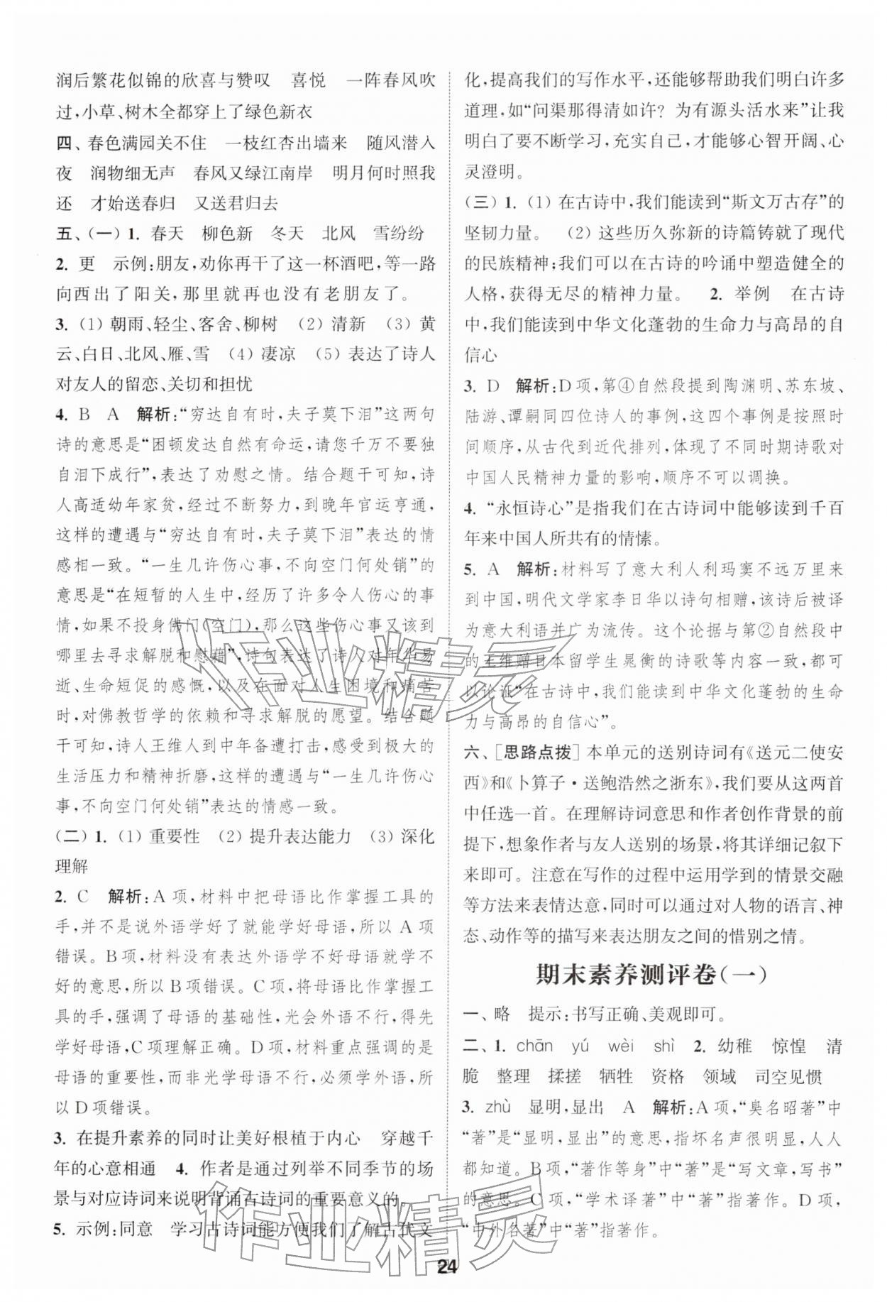 2026年通城学典课时作业本六年级语文下册人教版江苏专版第24页