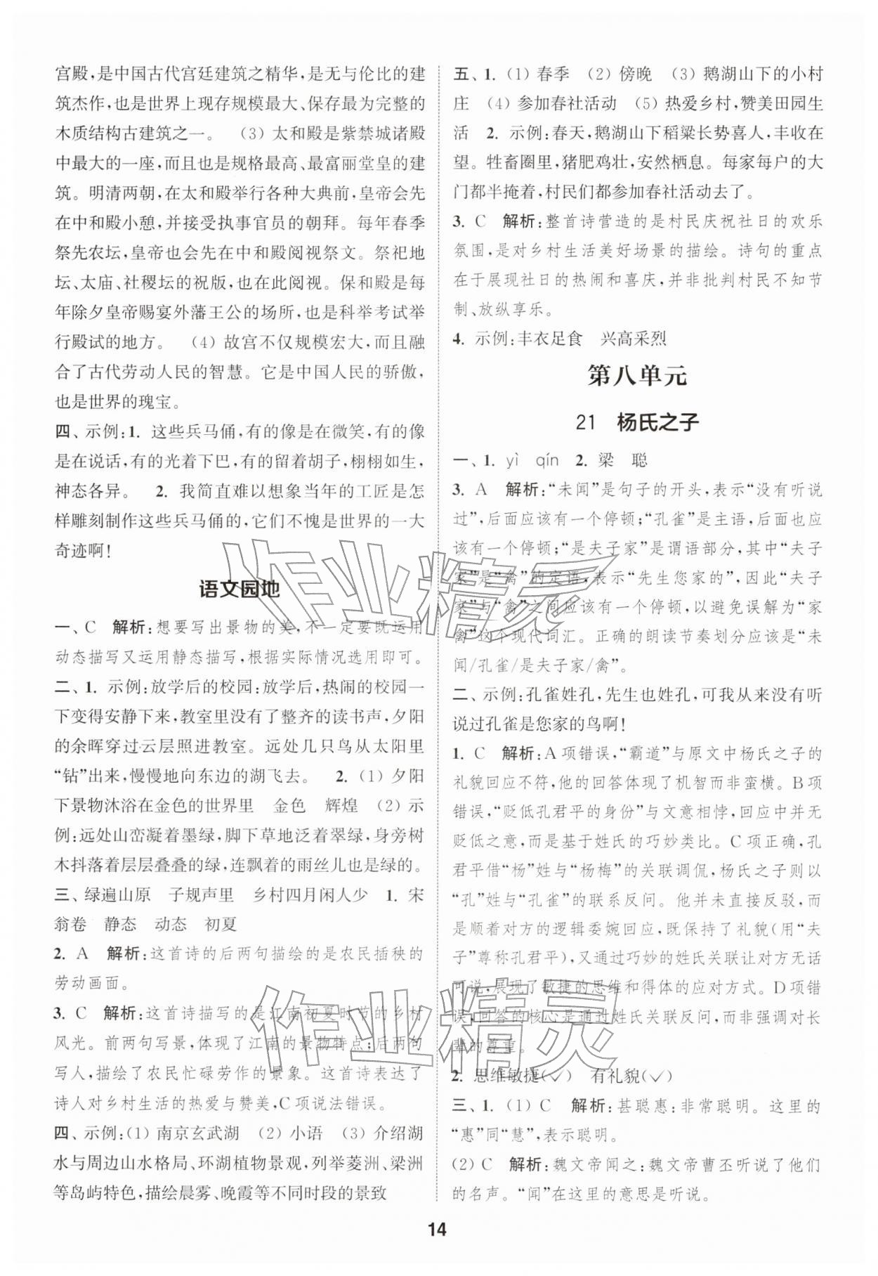 2026年通城学典课时作业本五年级语文下册人教版江苏专版第14页