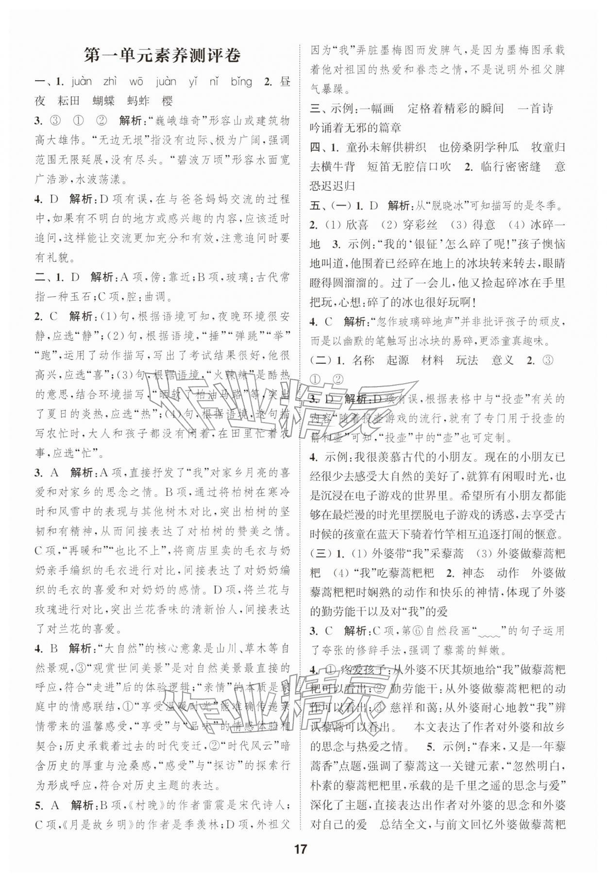 2026年通城学典课时作业本五年级语文下册人教版江苏专版第17页
