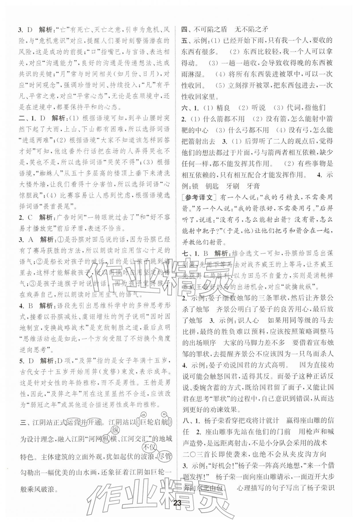 2026年通城学典课时作业本五年级语文下册人教版江苏专版第23页