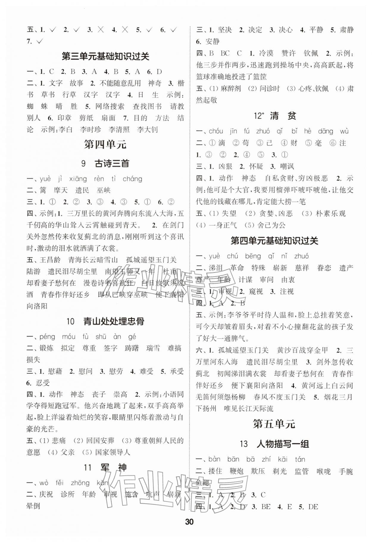 2026年通城学典课时作业本五年级语文下册人教版江苏专版第30页