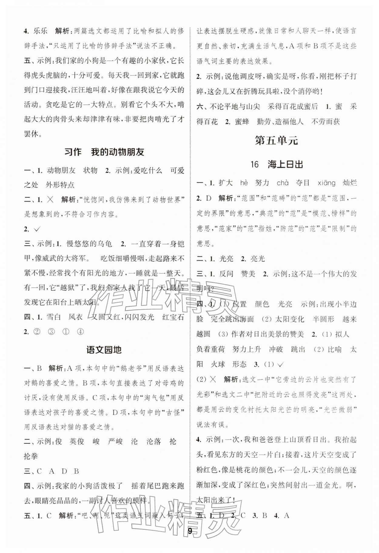 2026年通城学典课时作业本四年级语文下册人教版江苏专版第9页