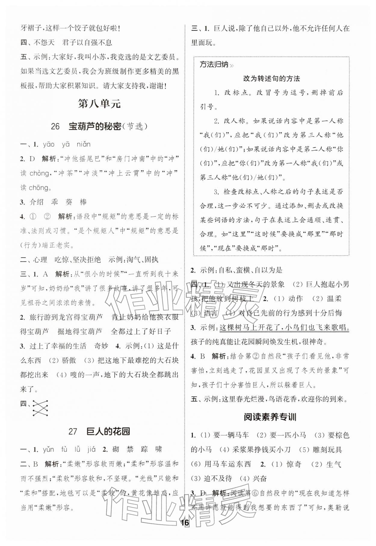 2026年通城学典课时作业本四年级语文下册人教版江苏专版第16页