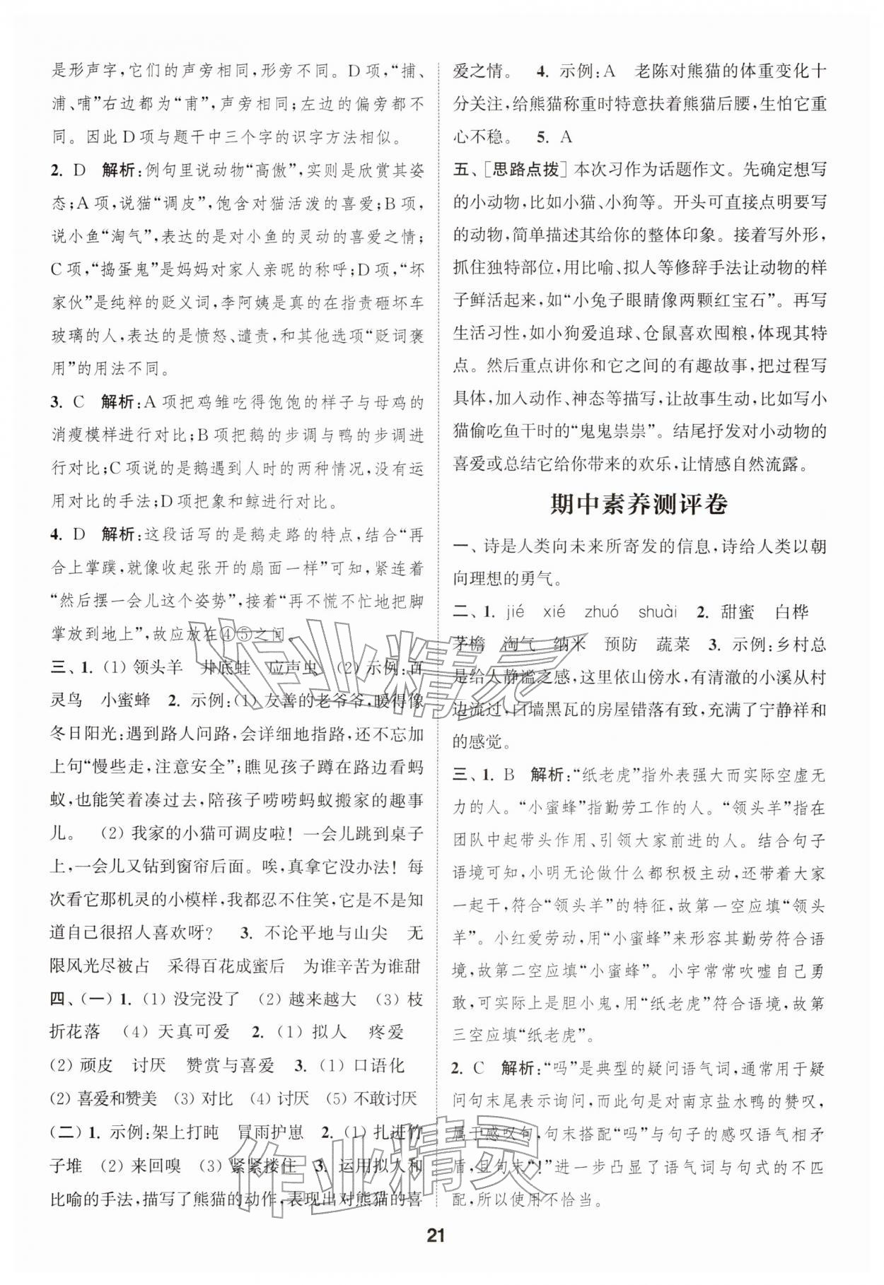 2026年通城学典课时作业本四年级语文下册人教版江苏专版第21页