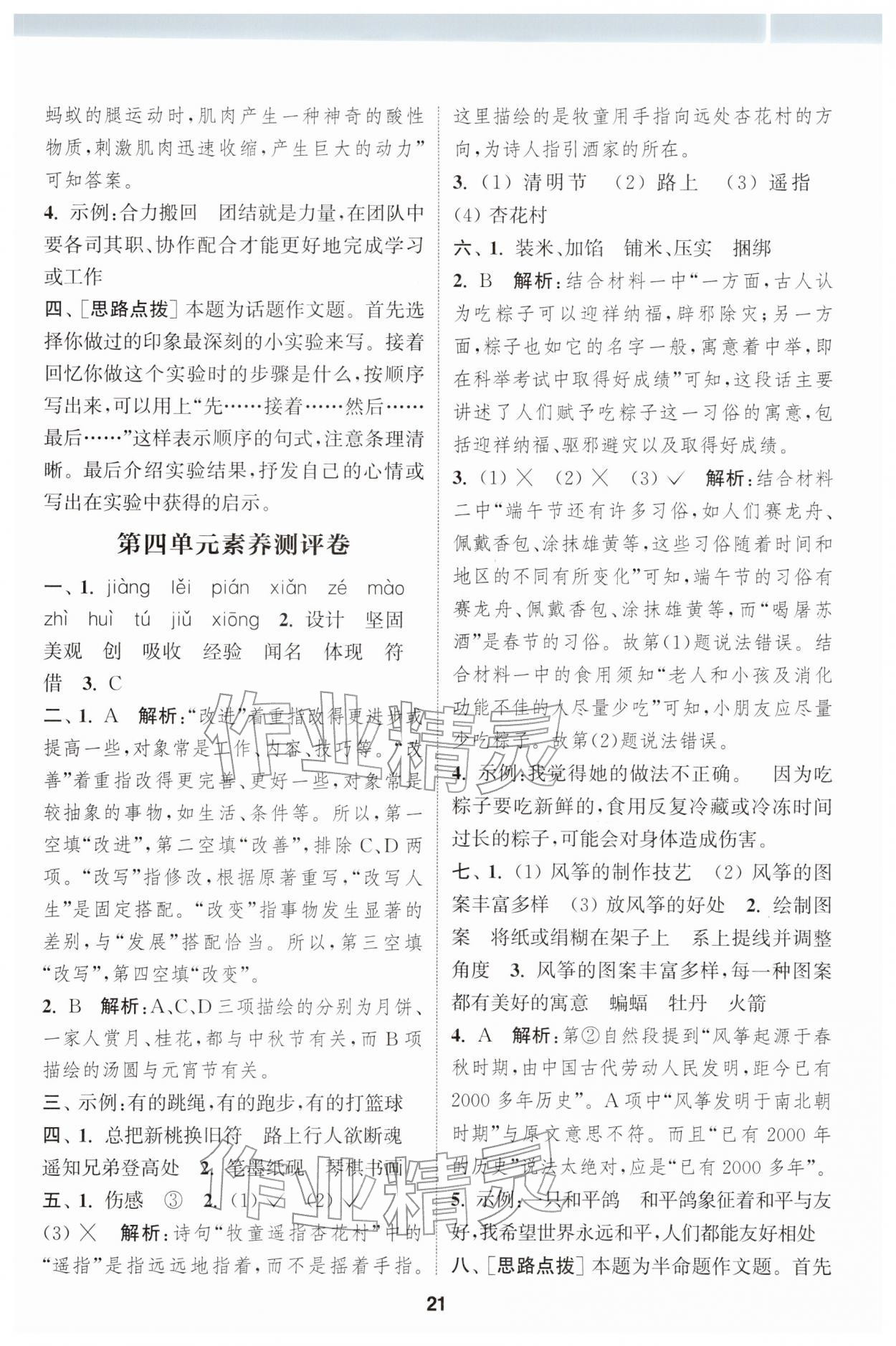 2026年通城学典课时作业本三年级语文下册人教版江苏专版第21页