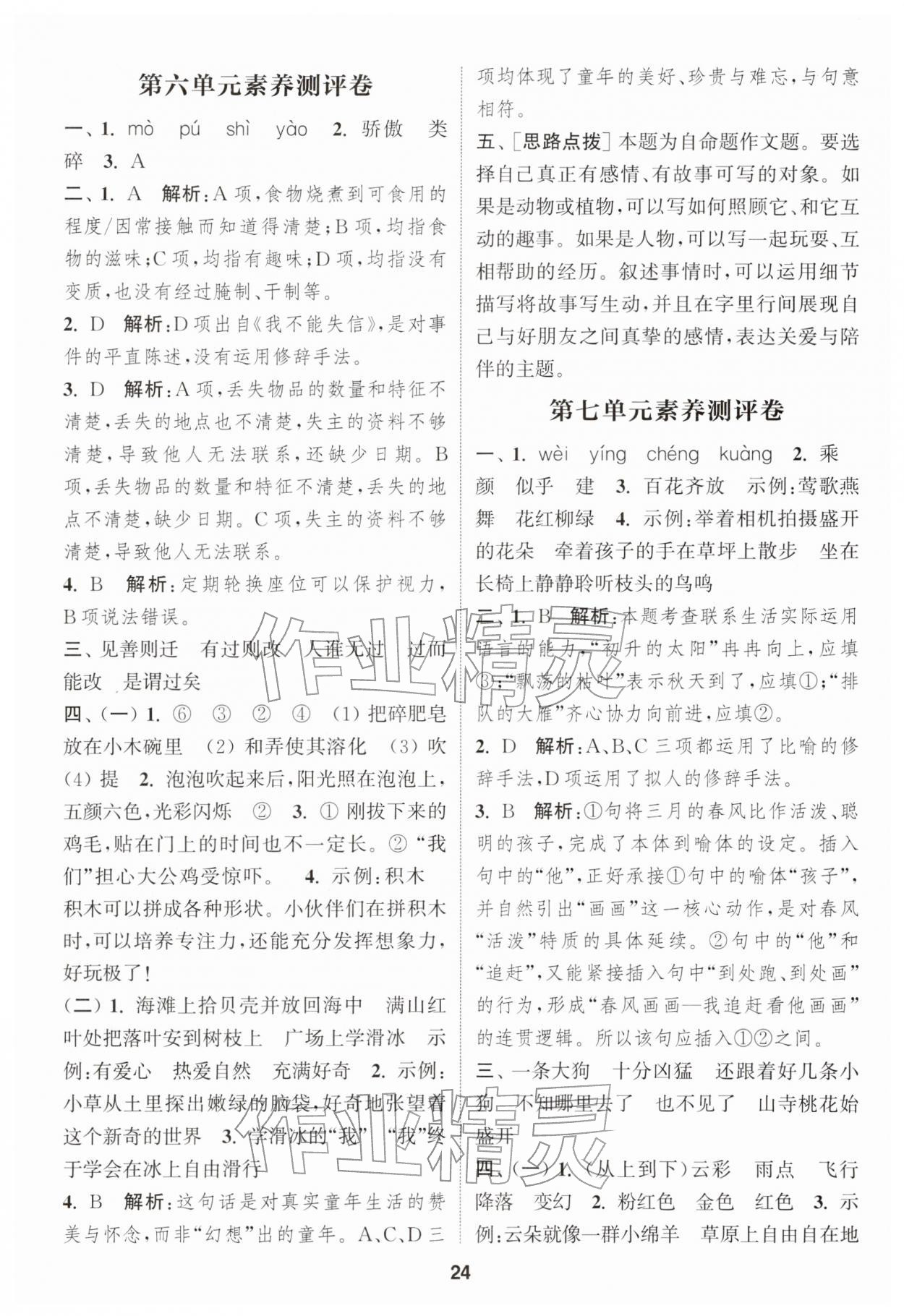 2026年通城学典课时作业本三年级语文下册人教版江苏专版第24页