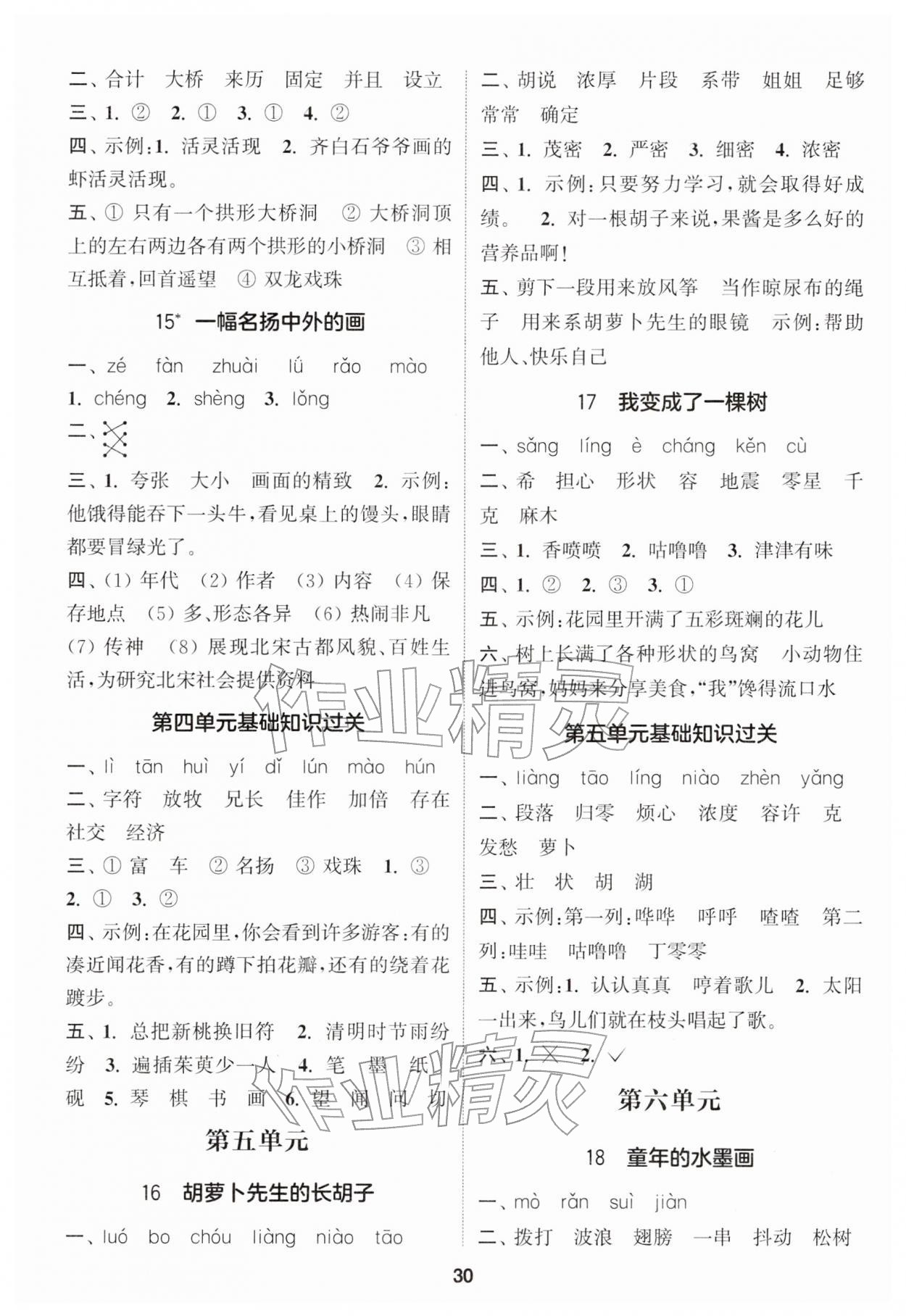 2026年通城学典课时作业本三年级语文下册人教版江苏专版第30页