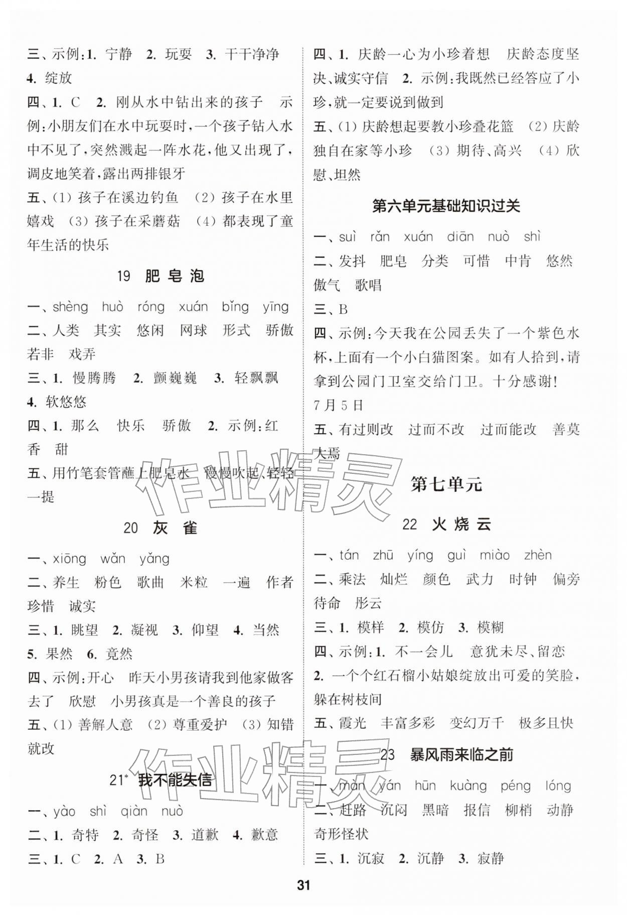 2026年通城学典课时作业本三年级语文下册人教版江苏专版第31页