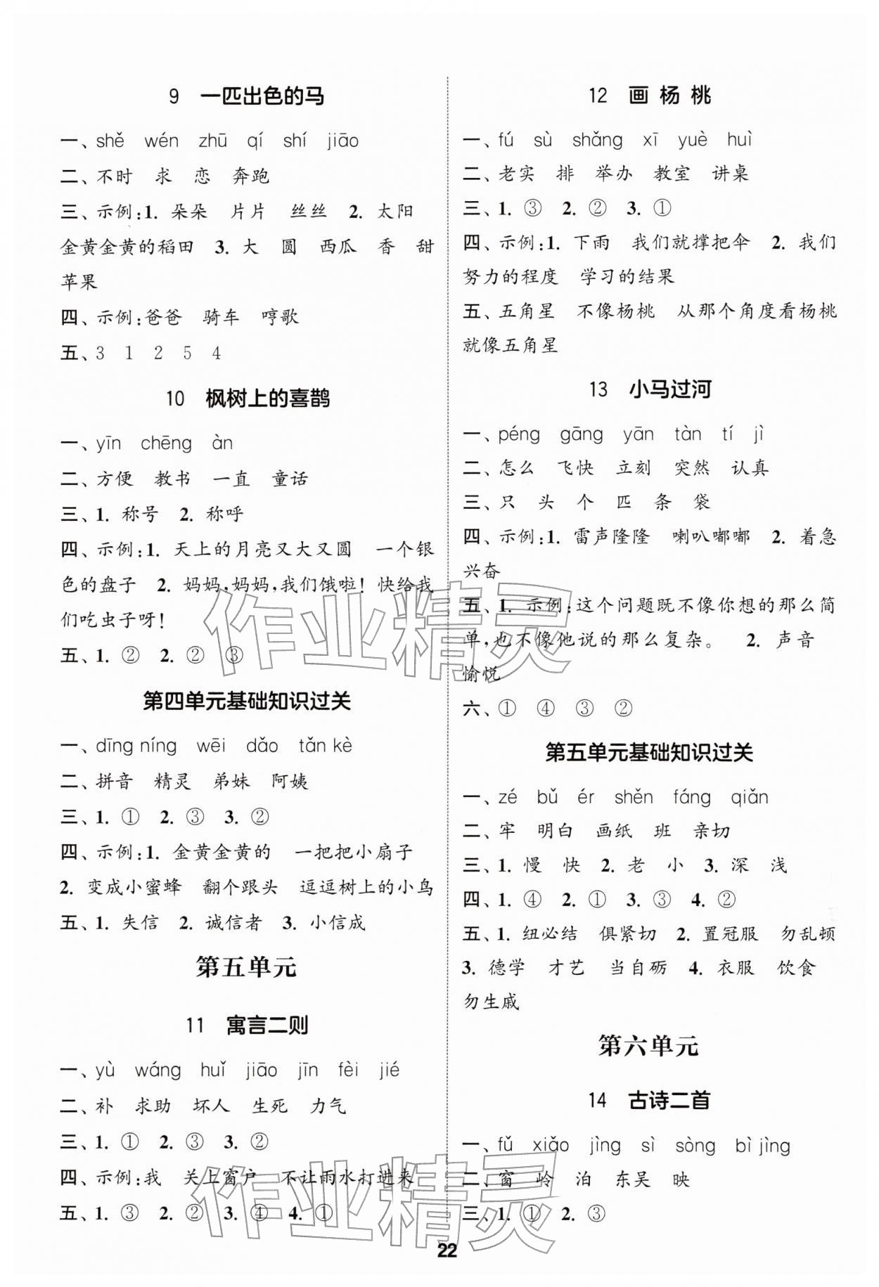 2026年通城学典课时作业本二年级语文下册人教版江苏专版第22页