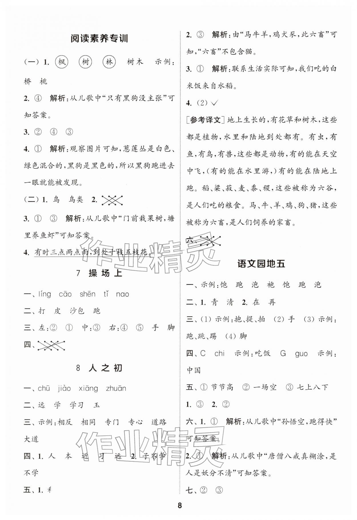 2026年通城学典课时作业本一年级语文下册人教版江苏专版第8页