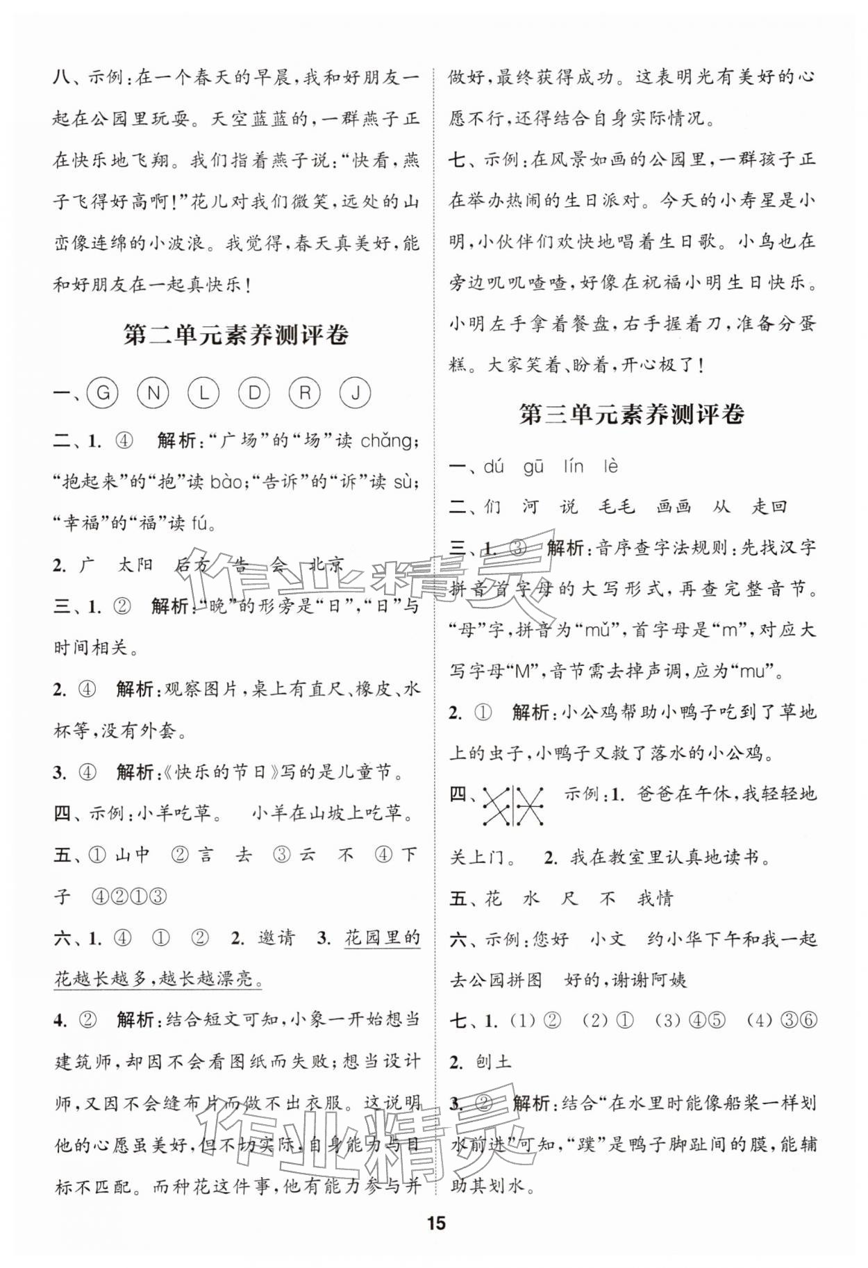 2026年通城学典课时作业本一年级语文下册人教版江苏专版第15页