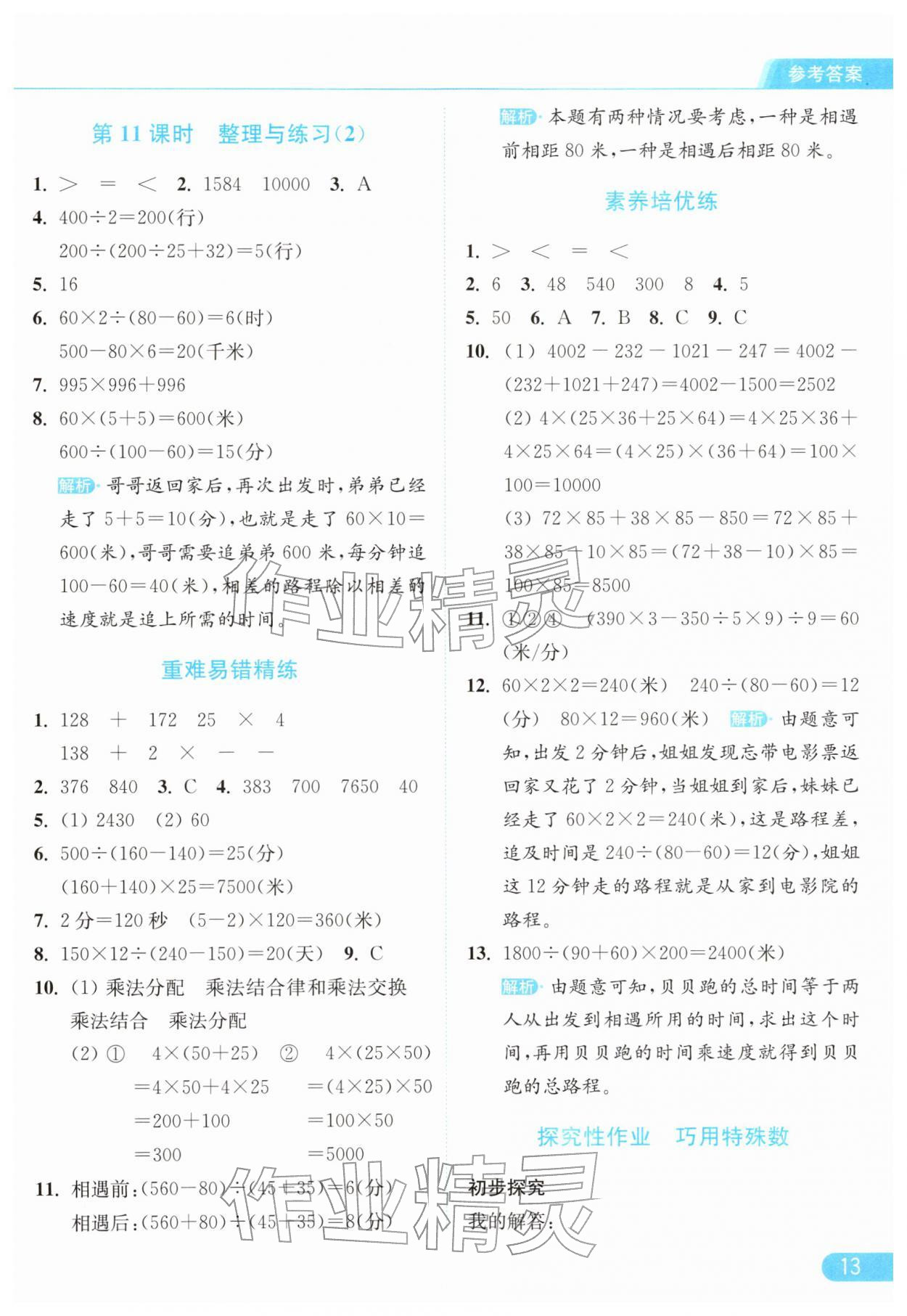 2026年亮点给力提优课时作业本四年级数学下册苏教版江苏专版参考答案第13页