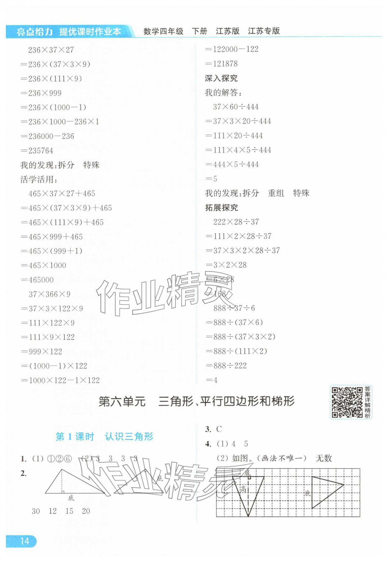2026年亮点给力提优课时作业本四年级数学下册苏教版江苏专版参考答案第14页