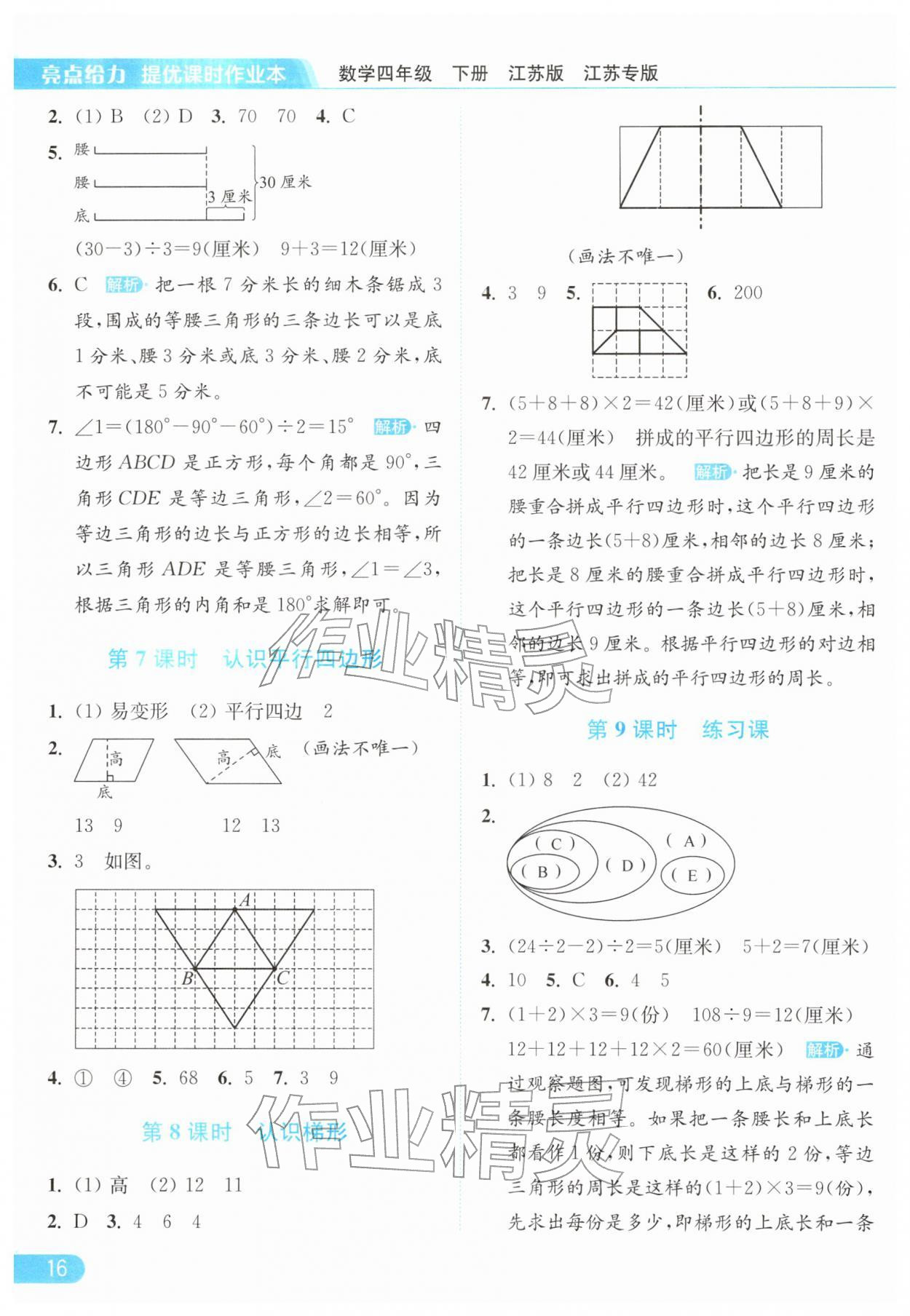 2026年亮点给力提优课时作业本四年级数学下册苏教版江苏专版参考答案第16页