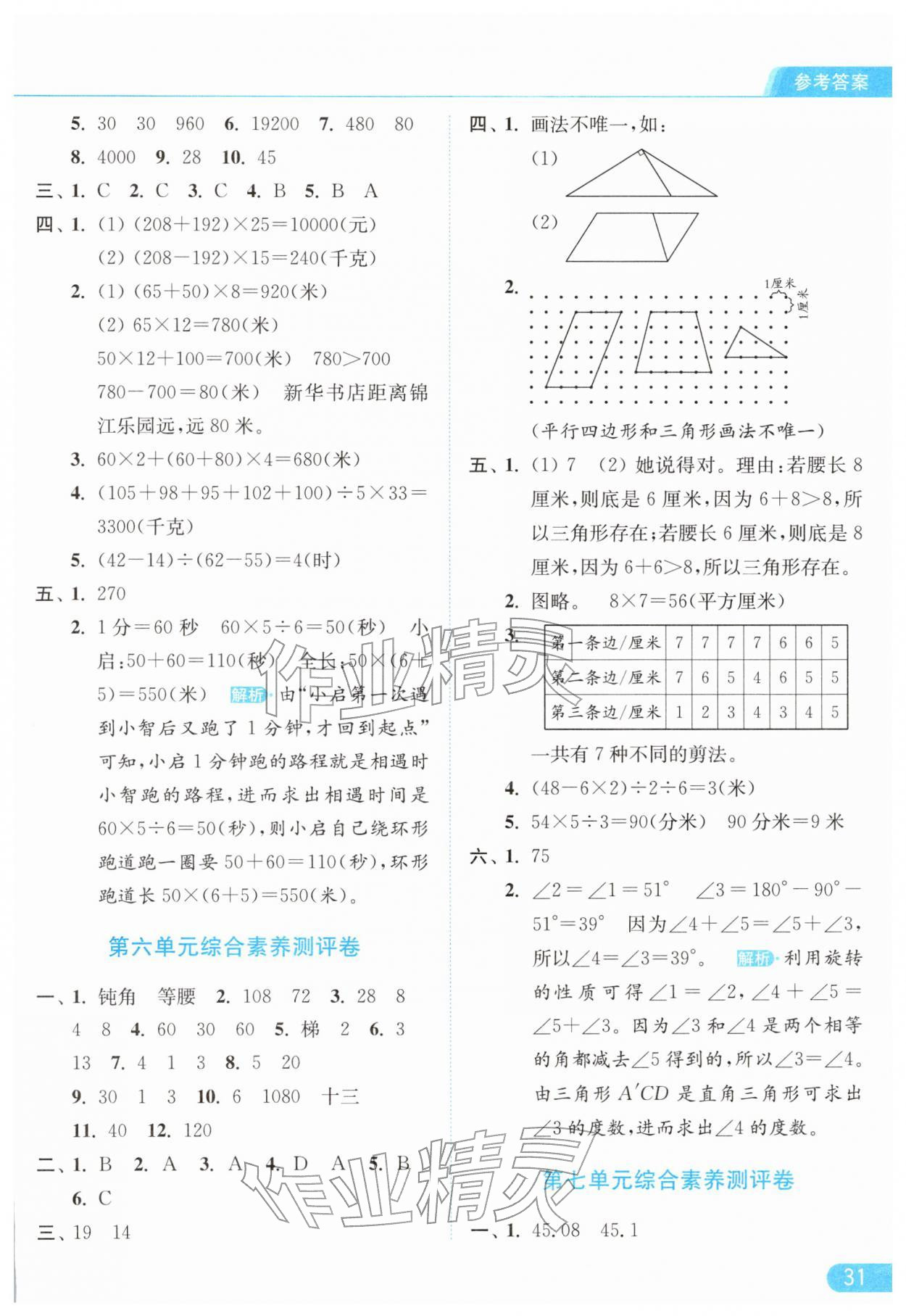 2026年亮点给力提优课时作业本四年级数学下册苏教版江苏专版参考答案第31页