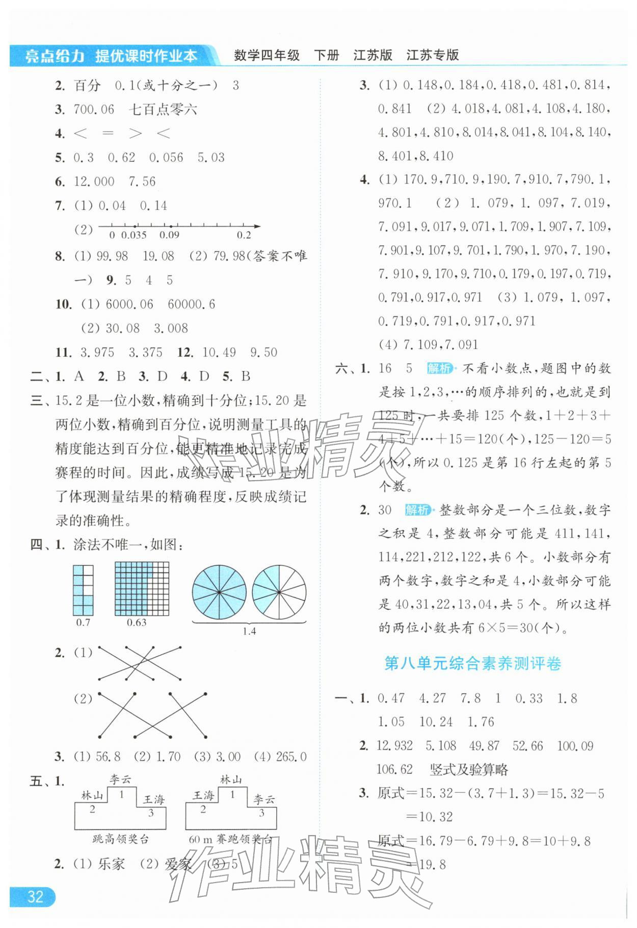2026年亮点给力提优课时作业本四年级数学下册苏教版江苏专版参考答案第32页