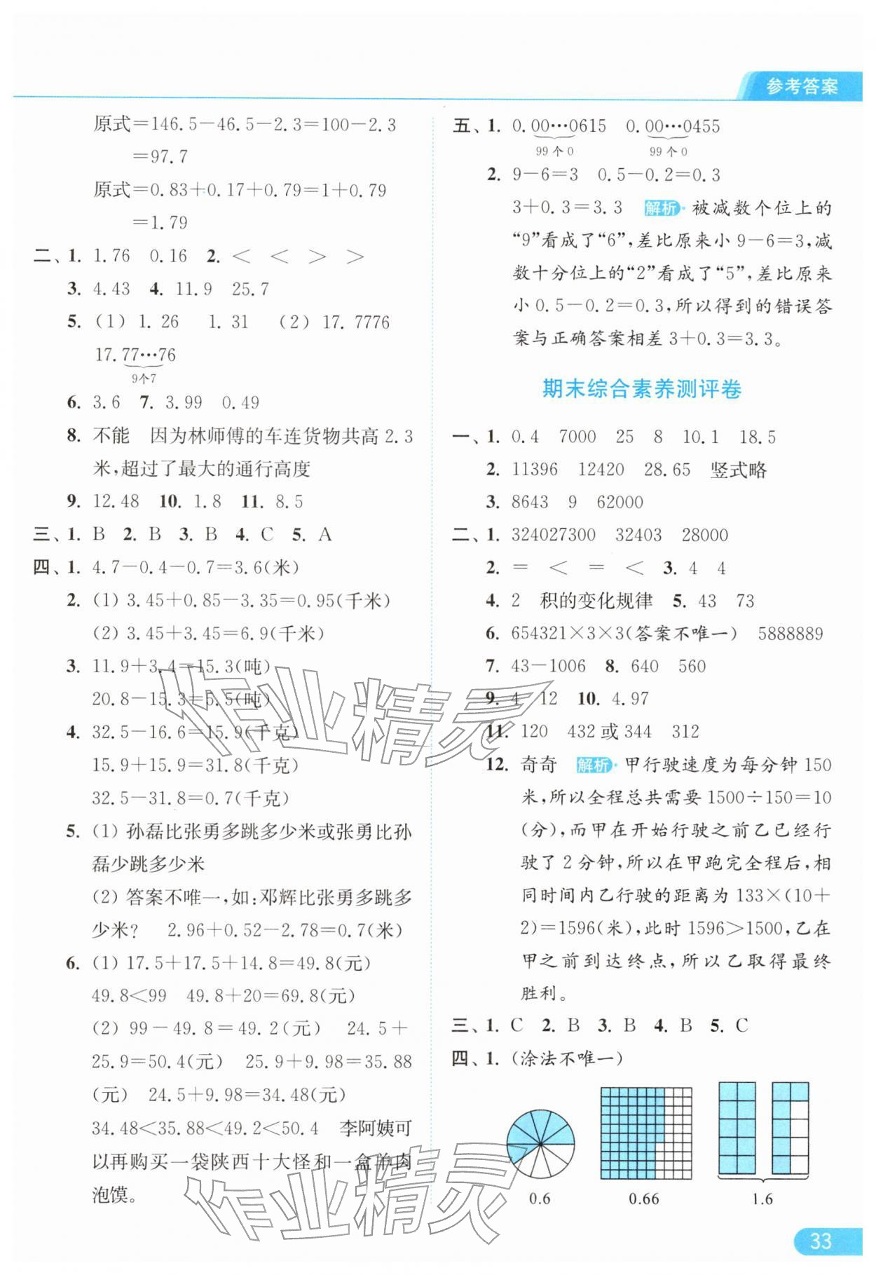 2026年亮点给力提优课时作业本四年级数学下册苏教版江苏专版参考答案第33页