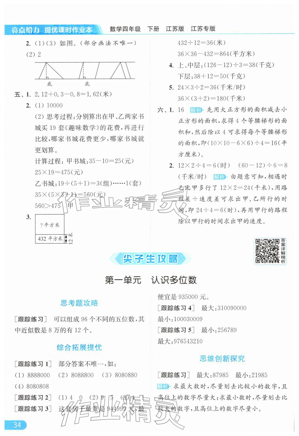 2026年亮点给力提优课时作业本四年级数学下册苏教版江苏专版参考答案第34页
