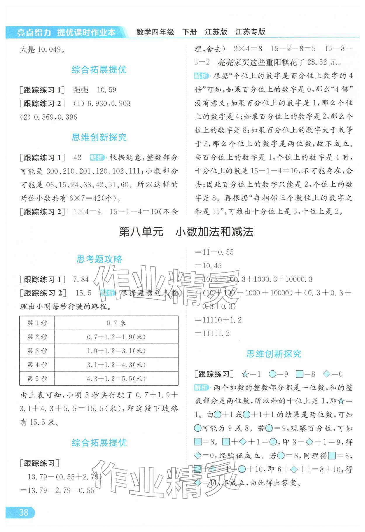 2026年亮点给力提优课时作业本四年级数学下册苏教版江苏专版参考答案第38页