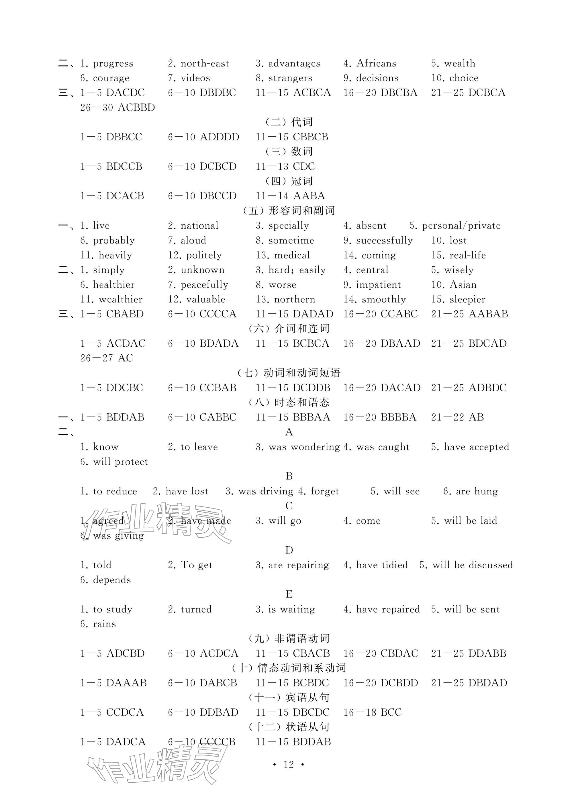 全部参考答案