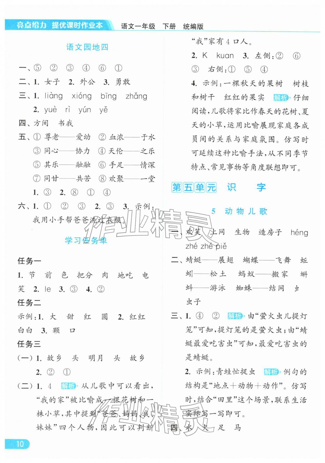 2026年亮点给力提优课时作业本一年级语文下册统编版第10页