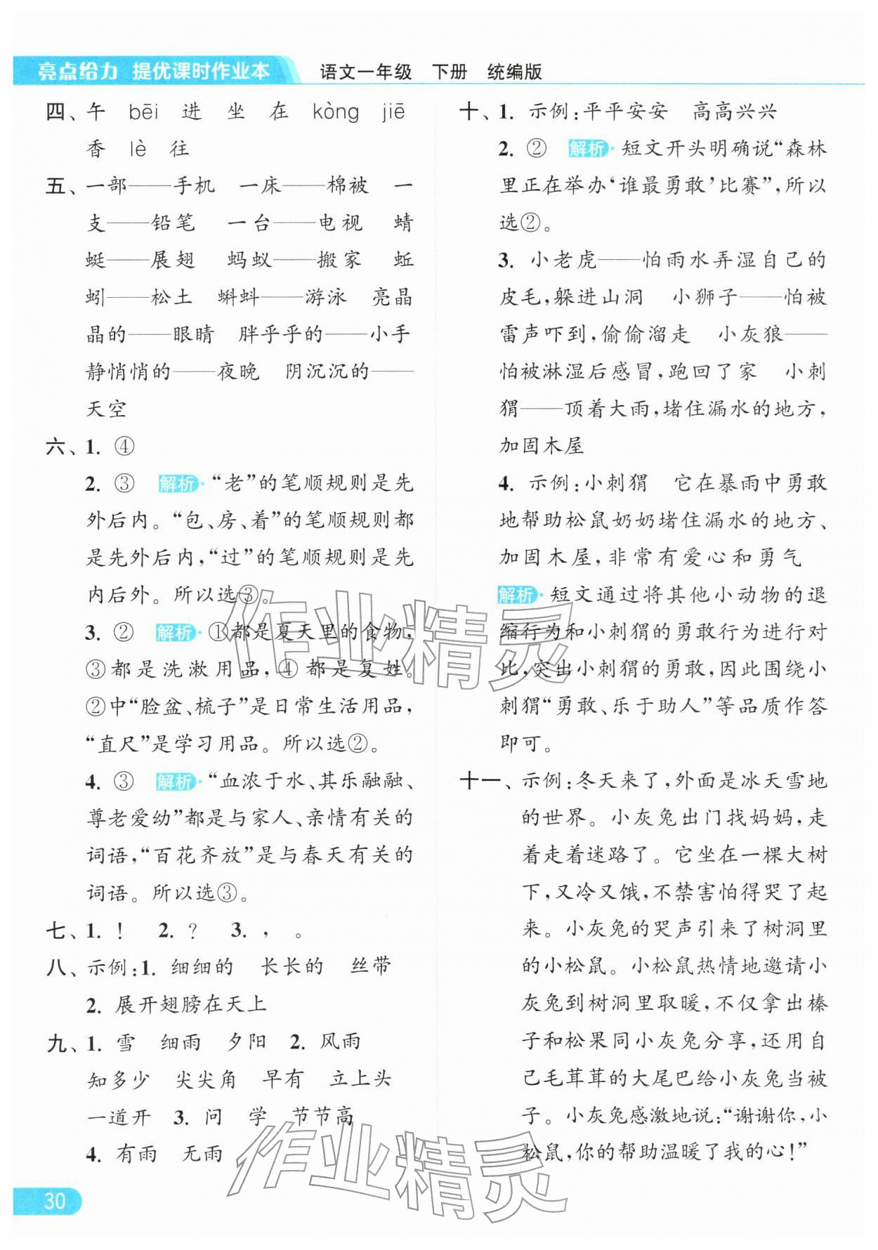 2026年亮点给力提优课时作业本一年级语文下册统编版第30页
