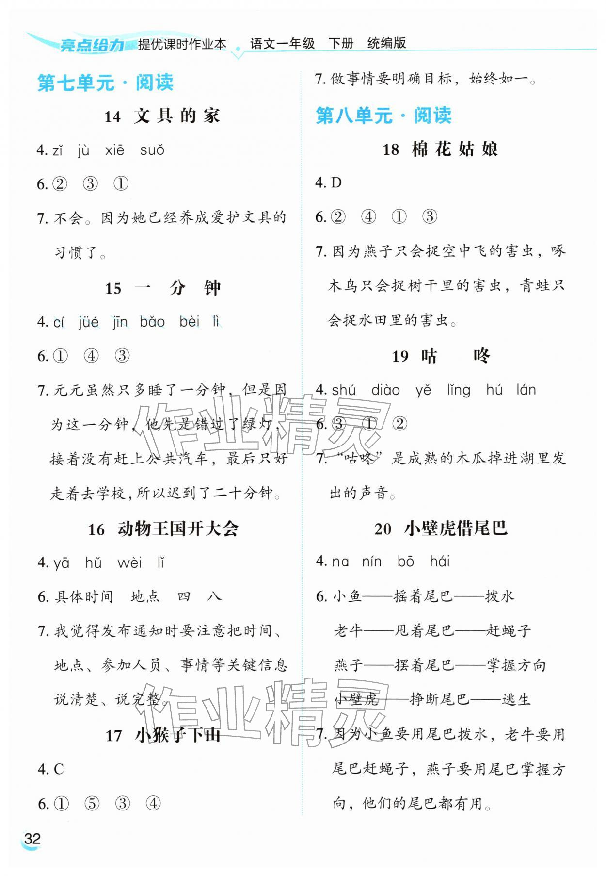 2026年亮点给力提优课时作业本一年级语文下册统编版第34页