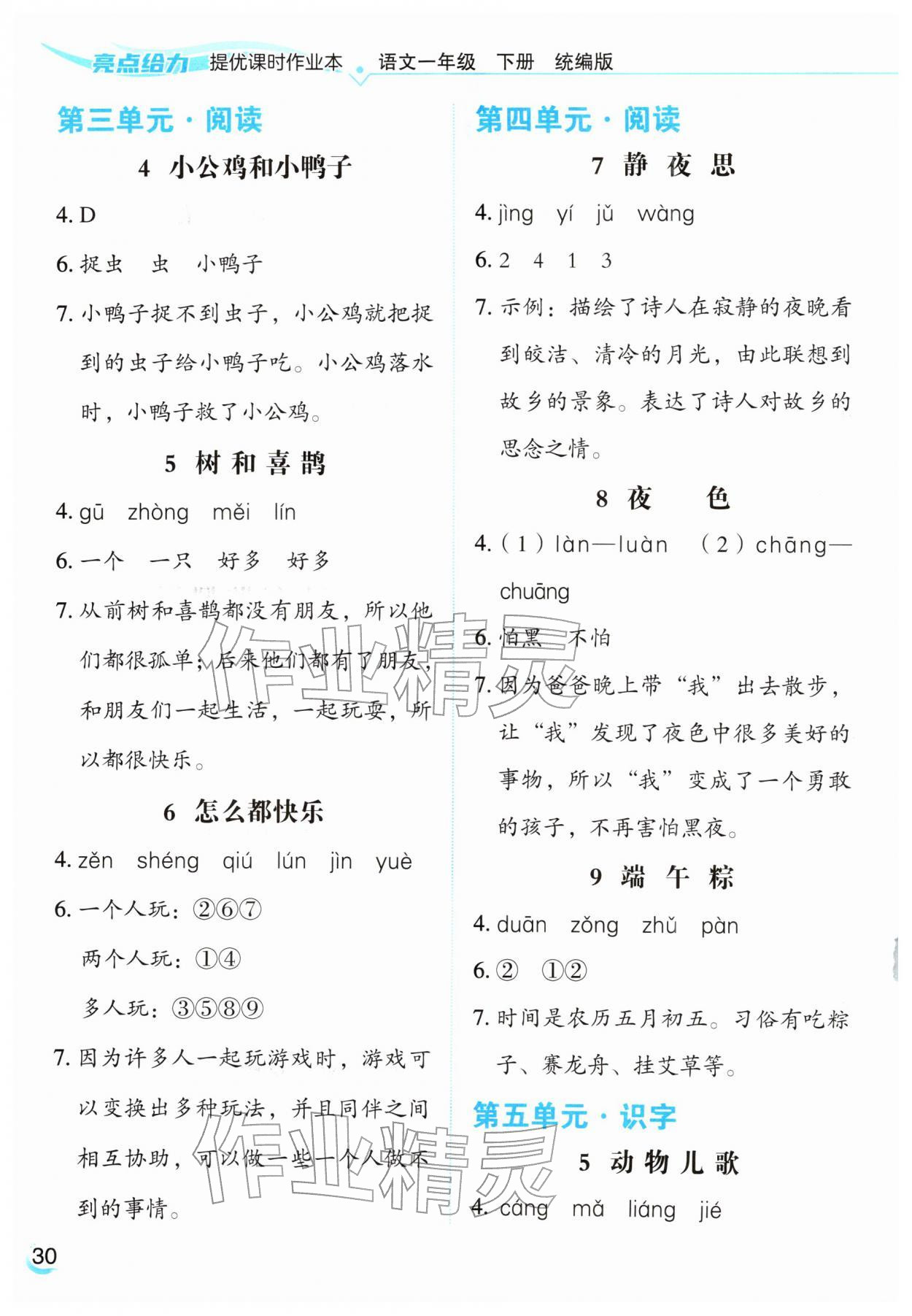 2026年亮点给力提优课时作业本一年级语文下册统编版第32页